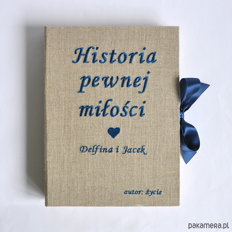 Notatnik, księga gości, pamiętnik... od podstaw wykonany ręcznie, od barwienia papieru, poprzez szycie i oprawę całości. Okładka obita płótnem (naturalnym lub granatowym do wyboru), na okładce haft, którego treść ustalamy indywidualnie. Wnętrze kryje 140 stron / 70 kartek postarzanego papieru, każda kartka była barwiona ręcznie w mojej pracowni (w tej cenie możliwość wymiany na 240 stron/120 kartek białego gładkiego papieru). Wymiary 22 x 30 x 3 cm. W cenie księgi mogę zamieścić personalizacje pierwszej strony (wydruk tekstu czarnym tuszem, dowolna czcionka, dowolna treść). Zapraszam :)