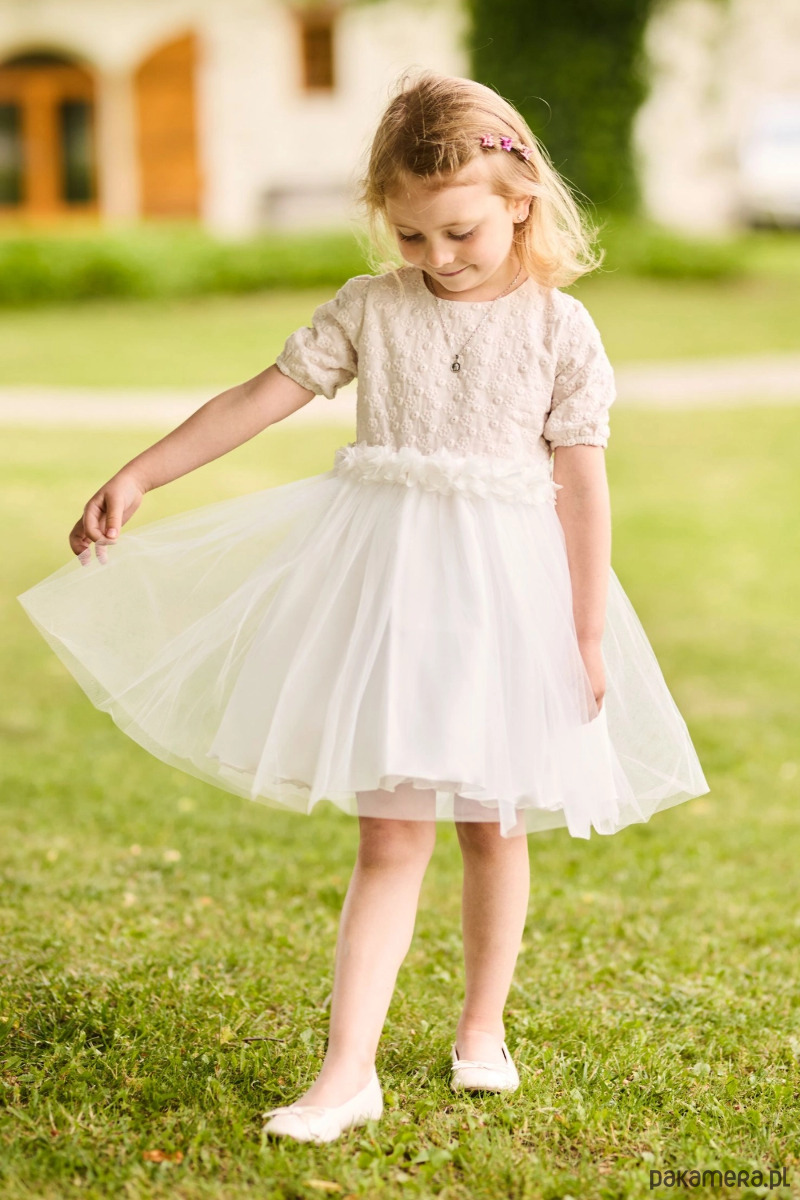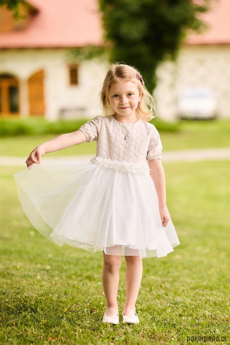 Elegancka sukienka tiulowa dla dziewczynki – beżowa, księżniczkowa