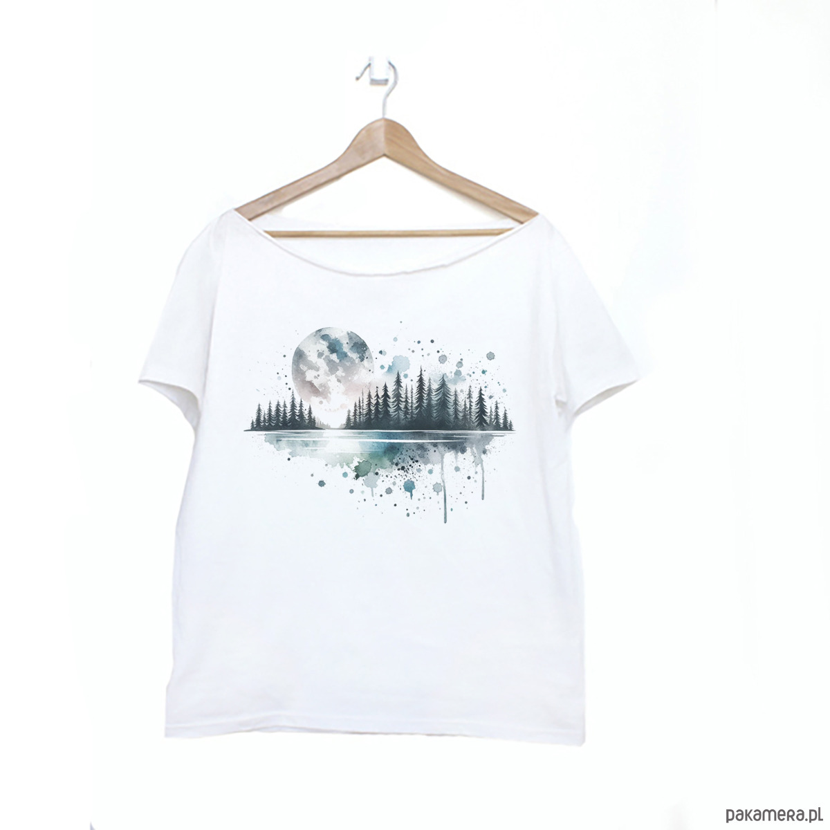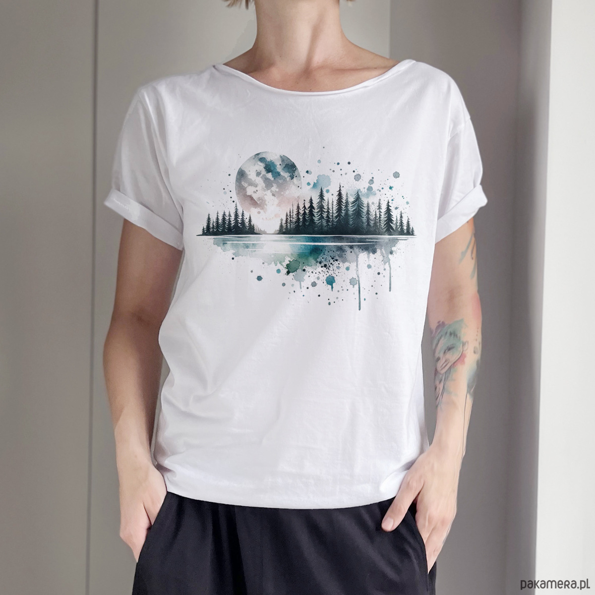 Biała koszulka z akwarelowym, rozlewającym się, delikatnym nadrukiem.