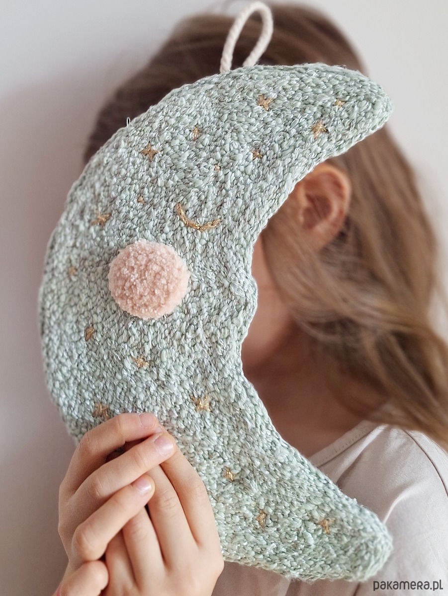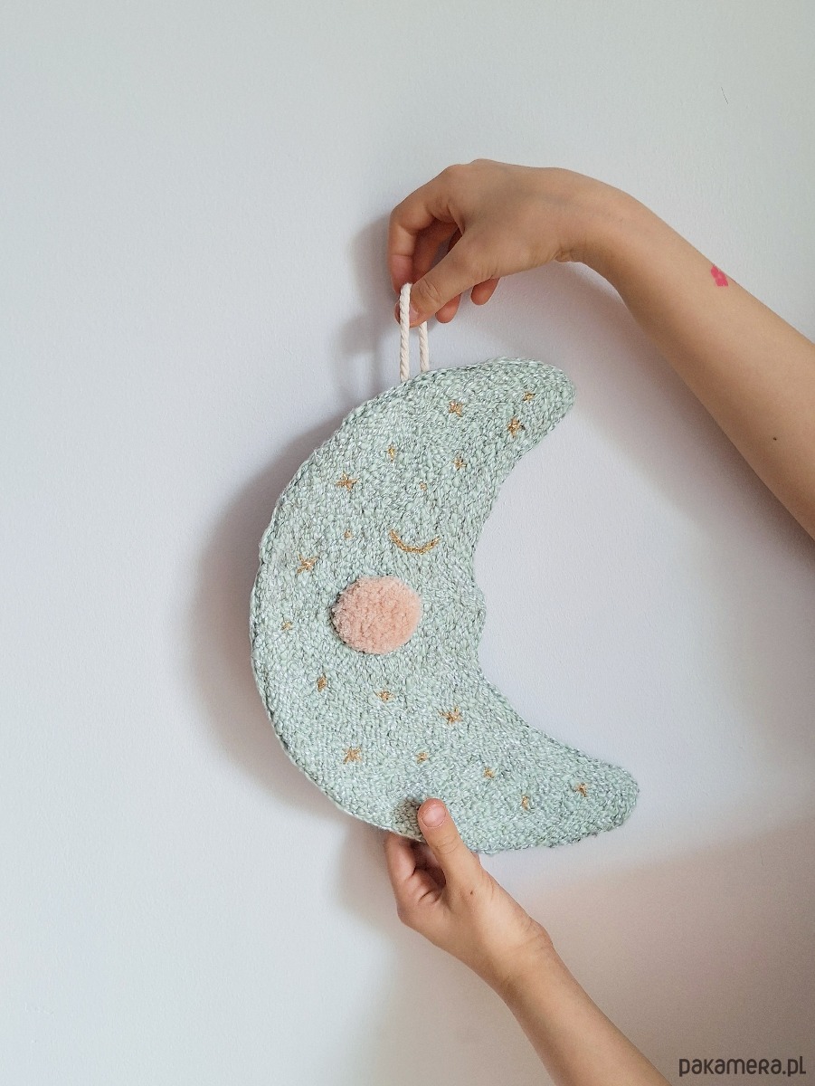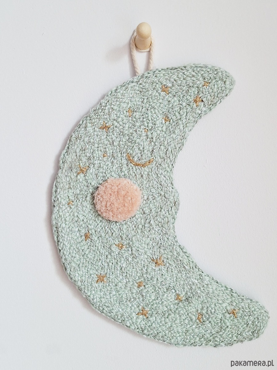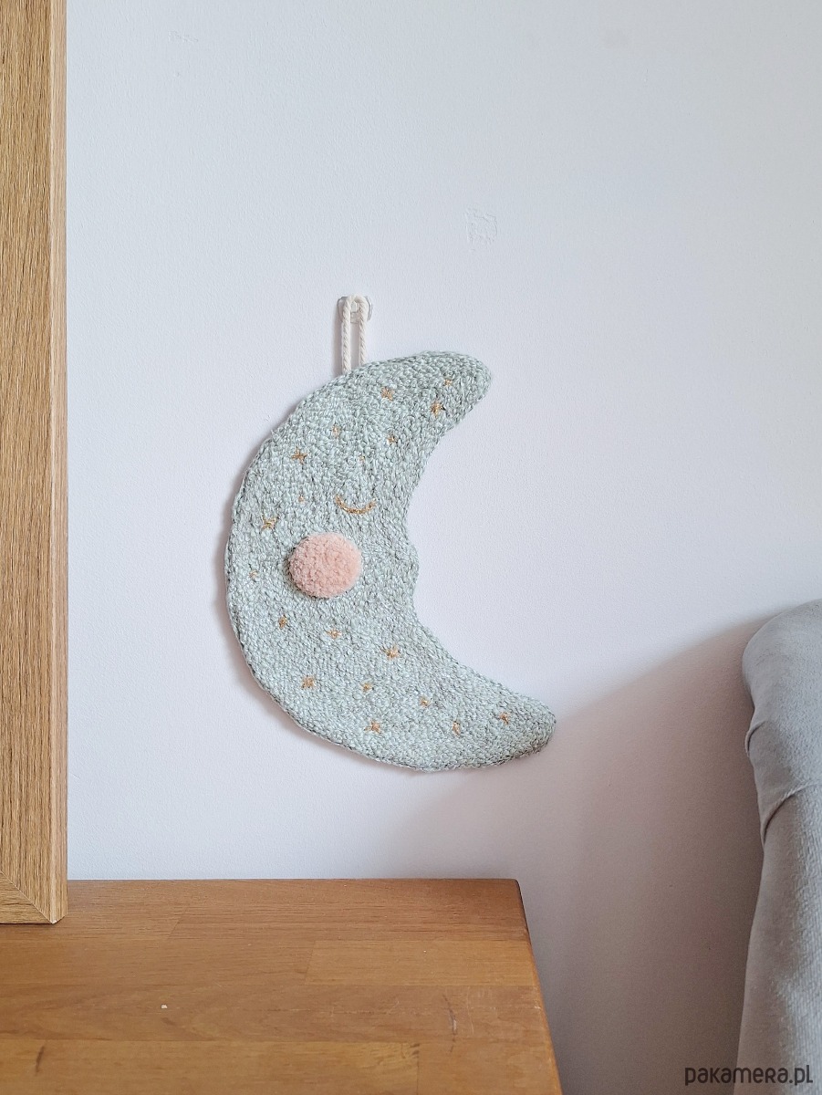 Dekoracyjny księżyc na ścianę, który wprowadza do pokoju dziecka miękkość i spokój.