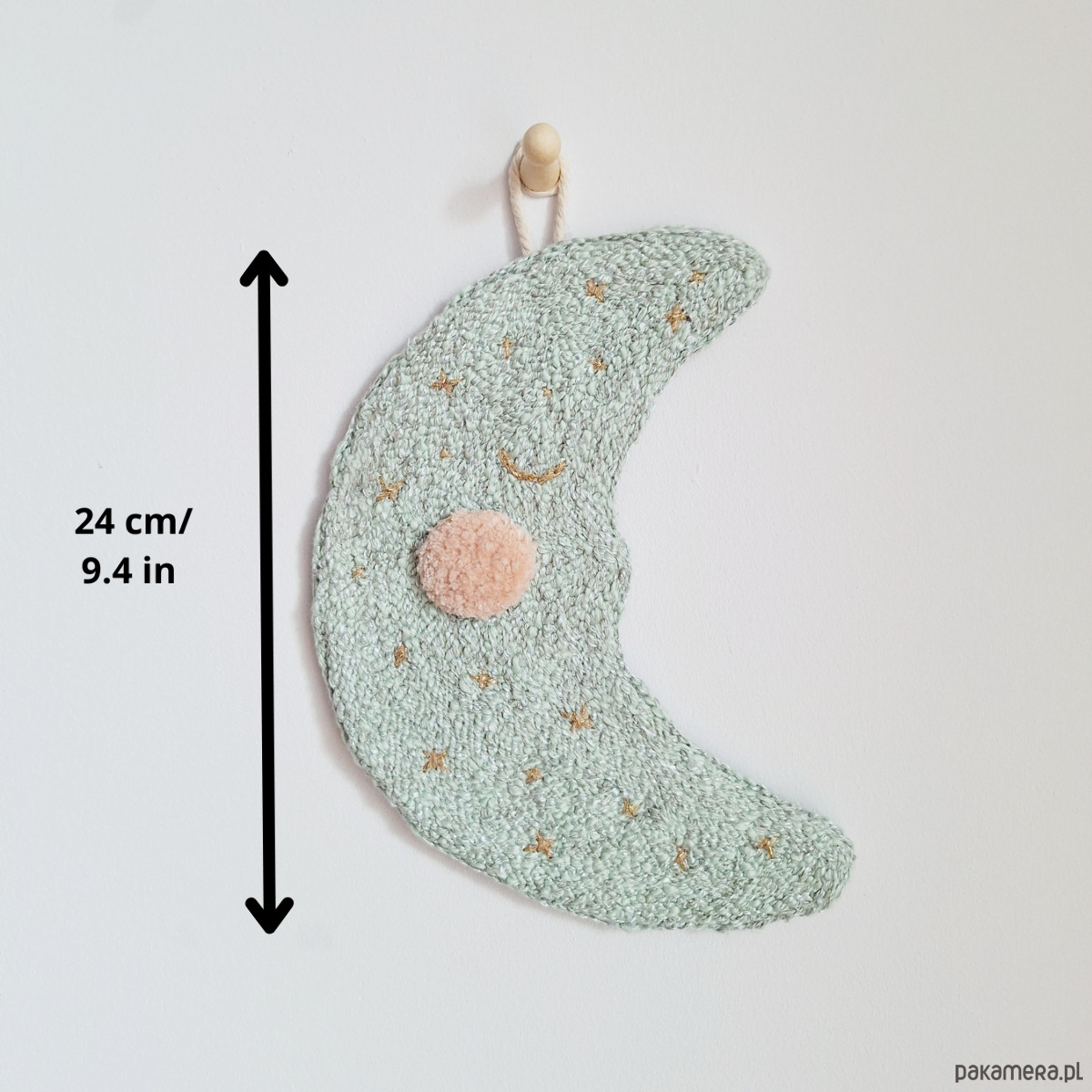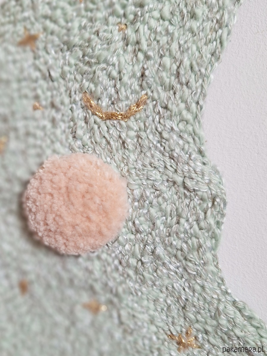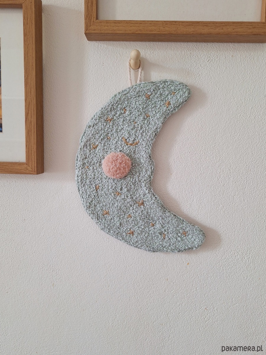 Dekoracyjny księżyc na ścianę, który wprowadza do pokoju dziecka miękkość i spokój.