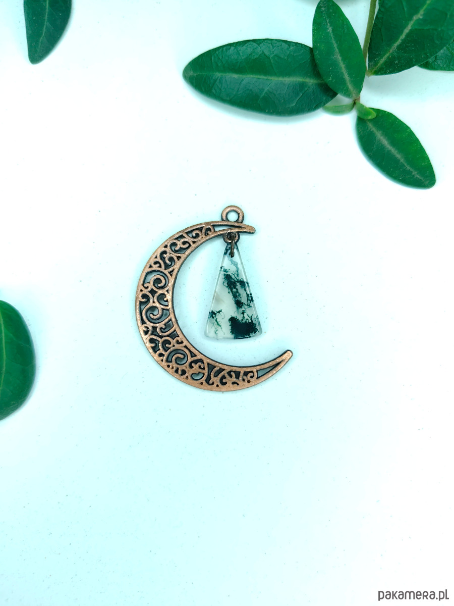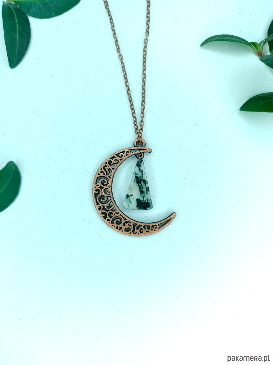 Wisiorek Księżyc z Agatem Mszystym- talizman intuicji, ochrony i spokoju