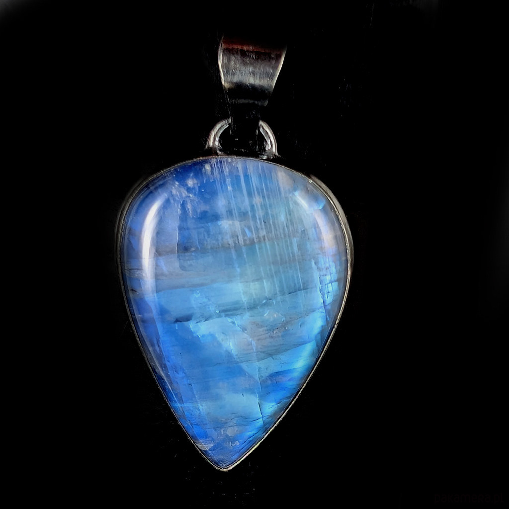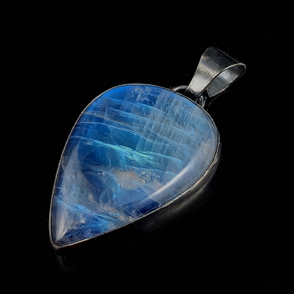 Uroczy wisior wykonany z oksydowanego srebra próby 925 oraz wspaniałego naturalnego kamienia księżycowego. Srebro oksydowane. Długość całkowita 50 mm, wymiary oprawy kamienia 36 x 26 mm. Waga 19 gramów. Zapakowany w ozdobne pudełeczko.