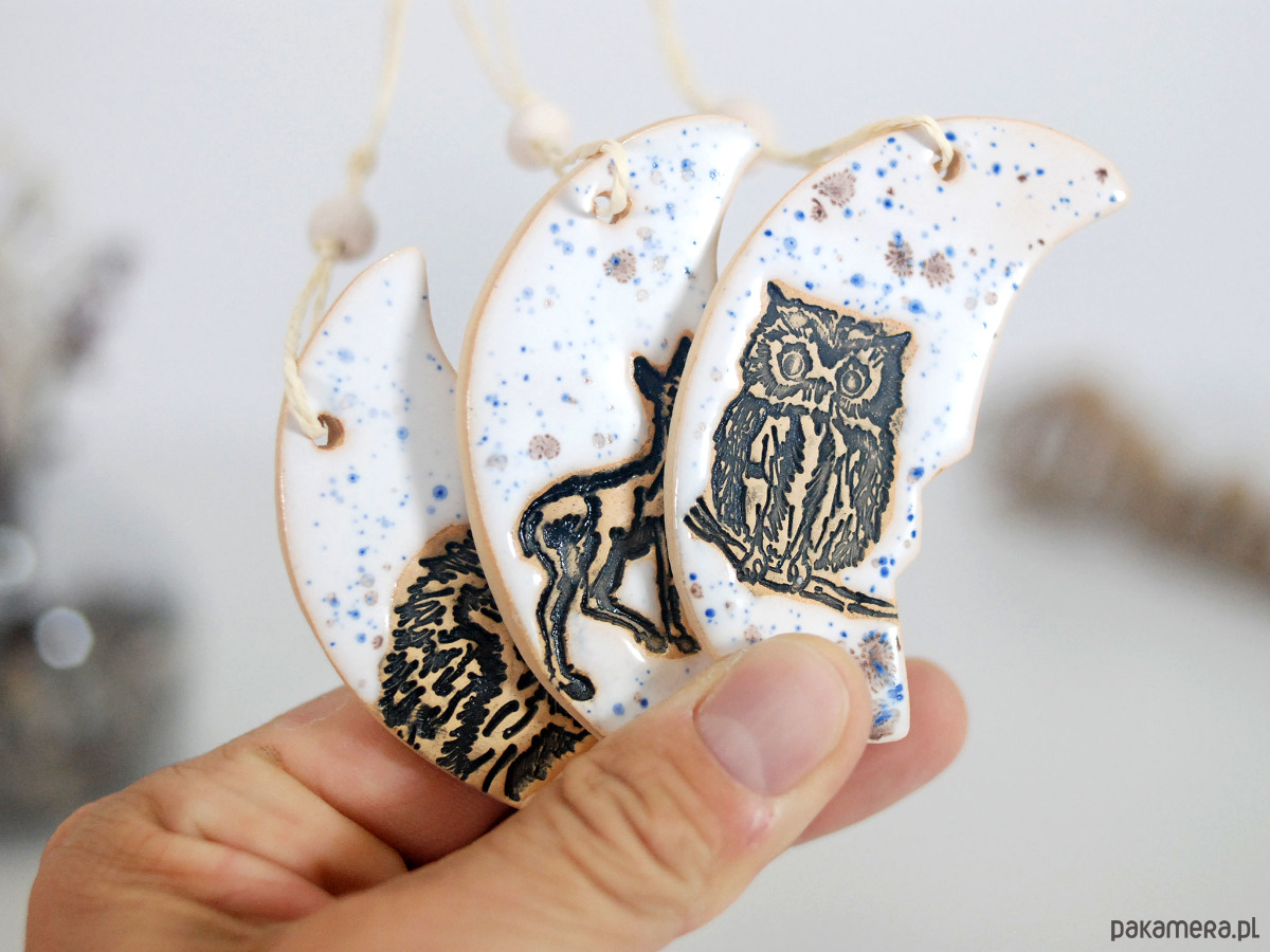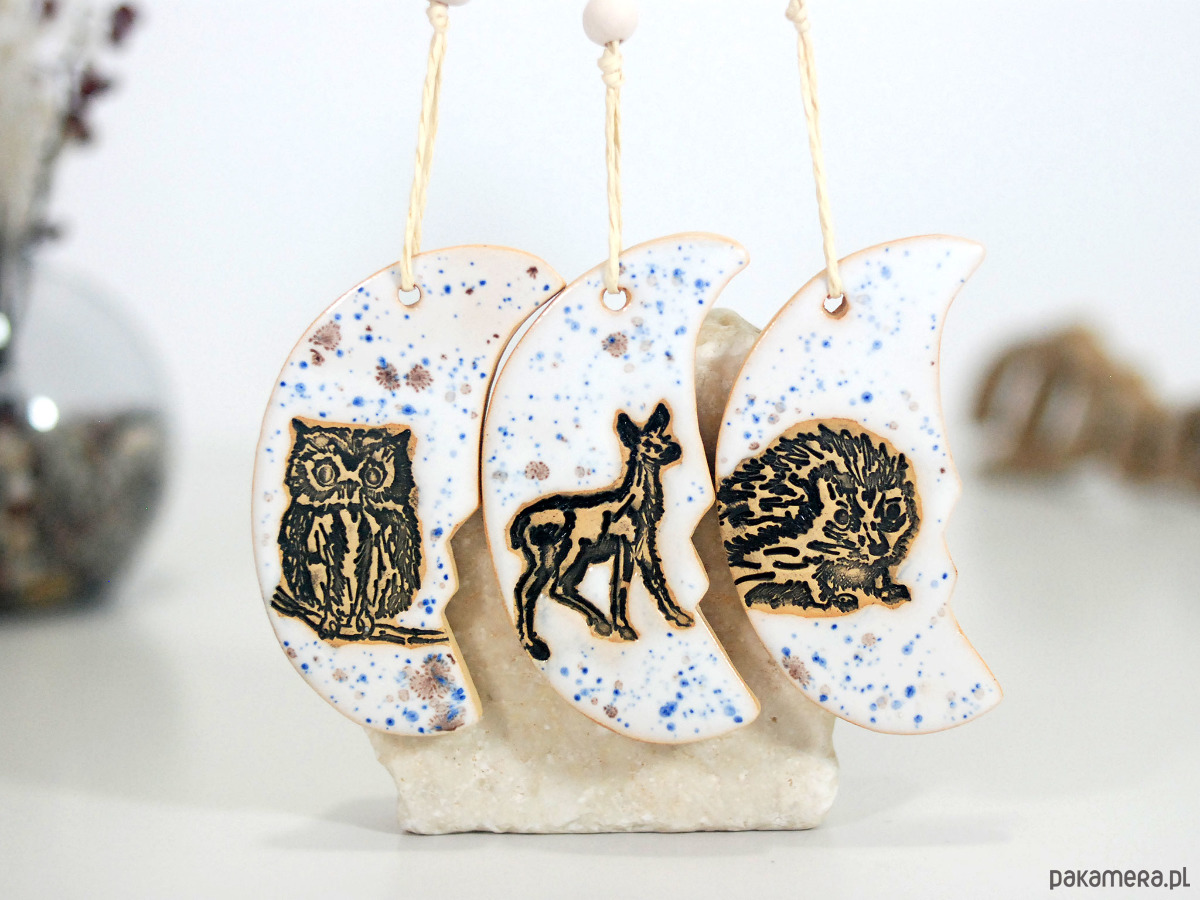 Zestaw zawiera 3 ręcznie robione i malowane ceramiczne księżyce.