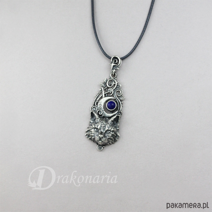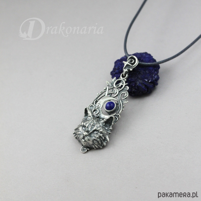Wisiorek przedstawia maleńki portret kota - zwierzę obecne w wielu kulturach, praktycznie na całym świecie - w religiach, legendach i szeroko rozumianym folklorze. Kot kojarzony jest z tajemnicami mroku, niezależnością, czarownictwem, cierpliwością łowcy, samoleczeniem, gracją i ciekawością. Łączy się go także z dynamicznym równoważeniem przeciwieństw - mroku i światła, odpoczynku i działania, tego co wewnętrzne i zewnętrzne etc. Koty postrzegane są także przez pryzmat różnych powiedzeń i przesądów. I oczywiście zawsze spadają na cztery łapy :-).