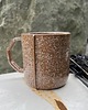 Kubeczek Mokka to prosta forma, ponadczasowa. Geometryczne uszko sprawia, że doskonale trzyma się go w dłoni. Zrobiliśmy go na ciemnej glinie i pokryliśmy go jasno brązowym szkliwem z białymi ciapami.