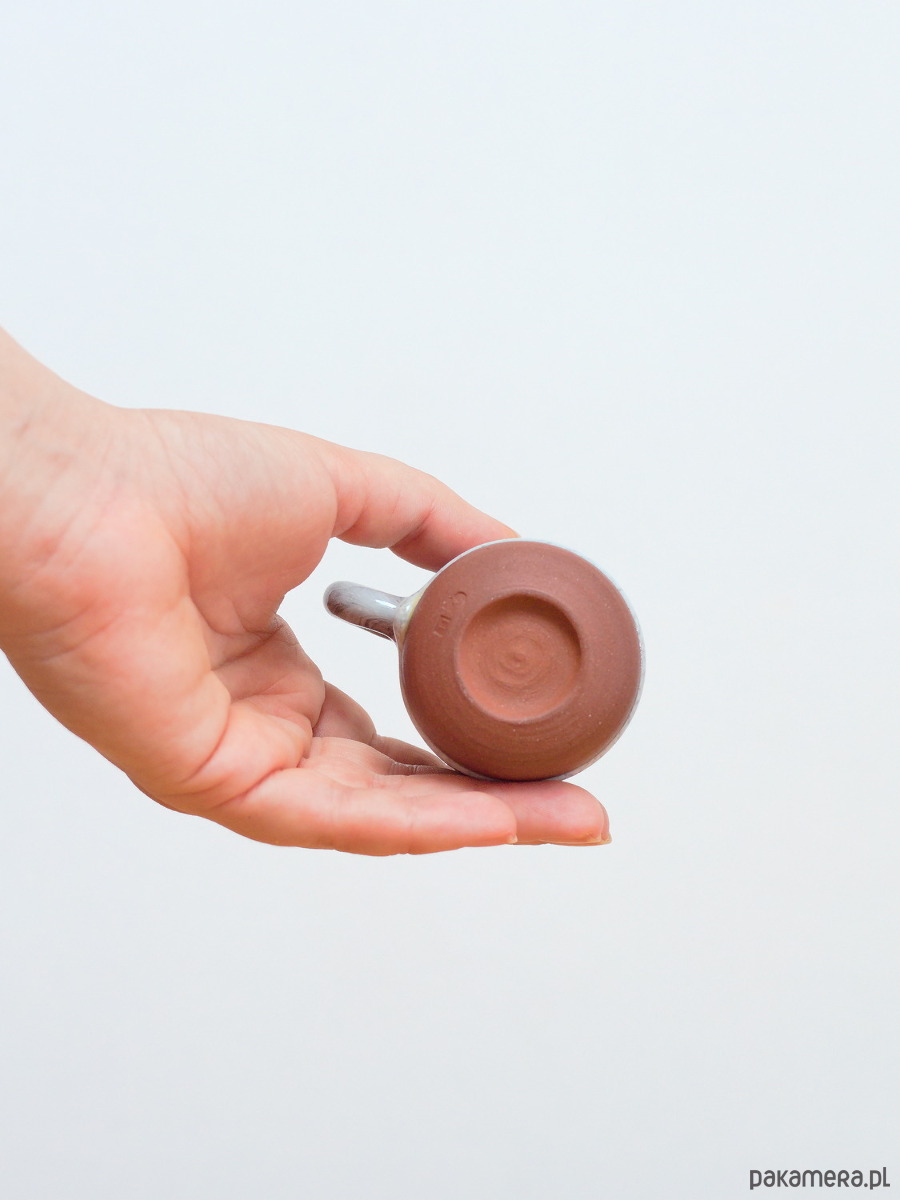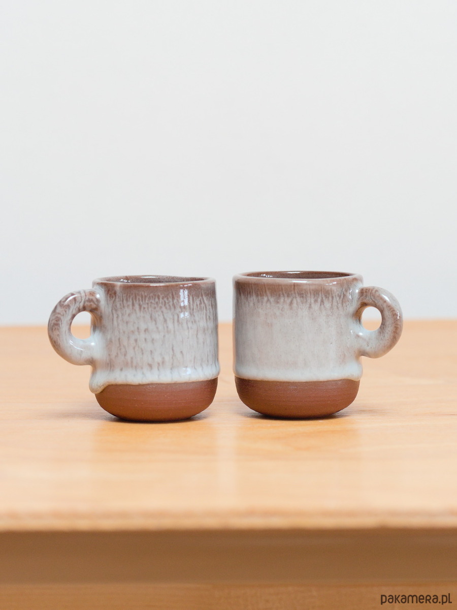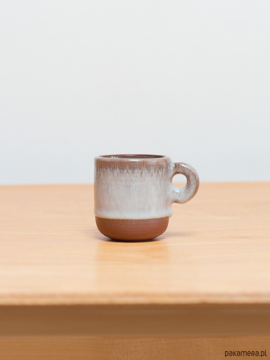 Kubeczek na espresso na 70ml z naturalnym beżowym glinianym spodem.