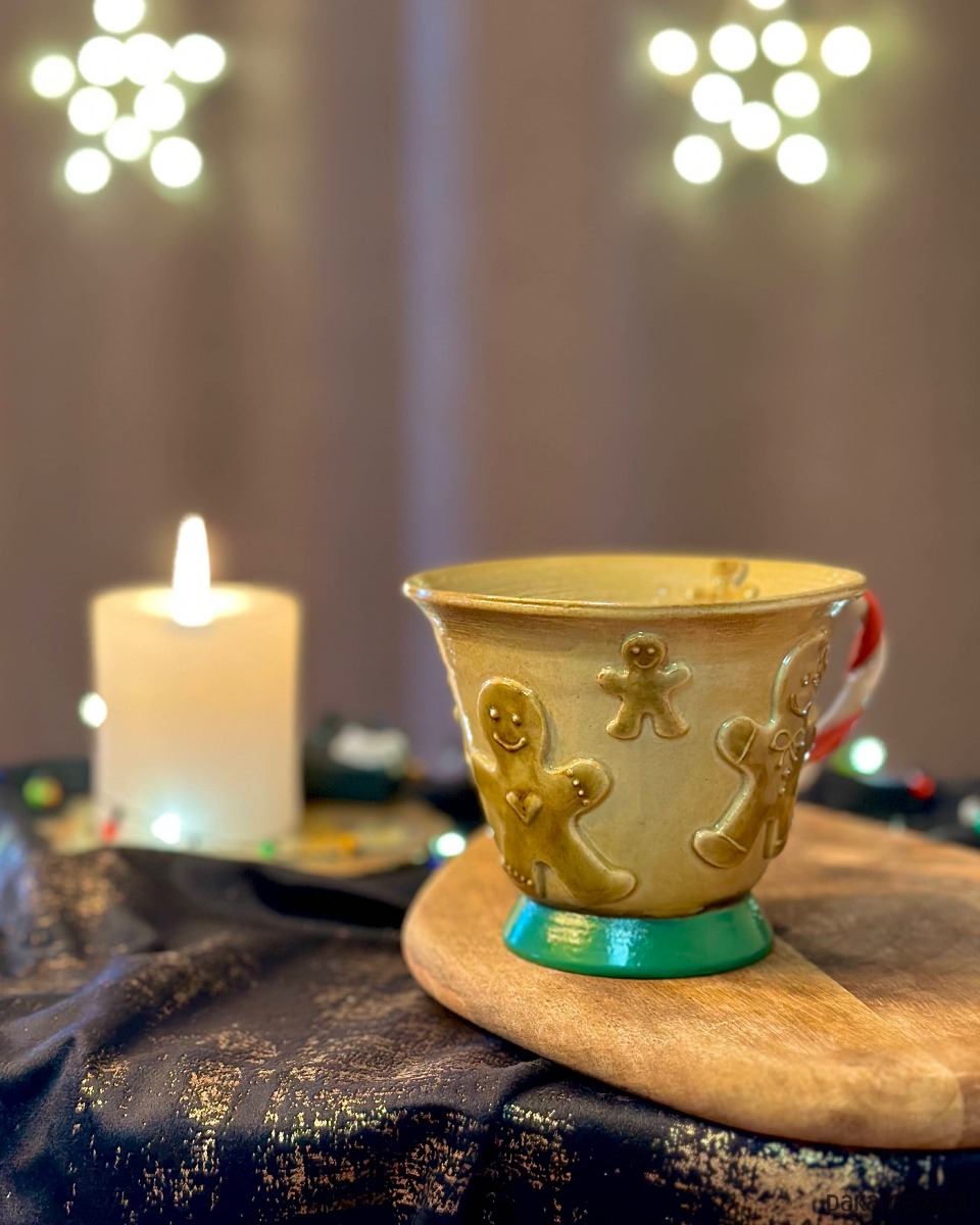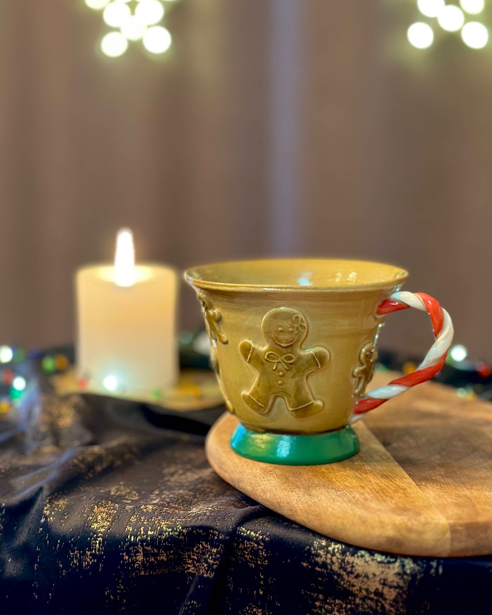 Kubki toczone na kole garncarskim i ręcznie formowane uszka w formie lasek cukrowych, indywidualnie przystrajane Ciastki to wyjątkowe dzieła sztuki.