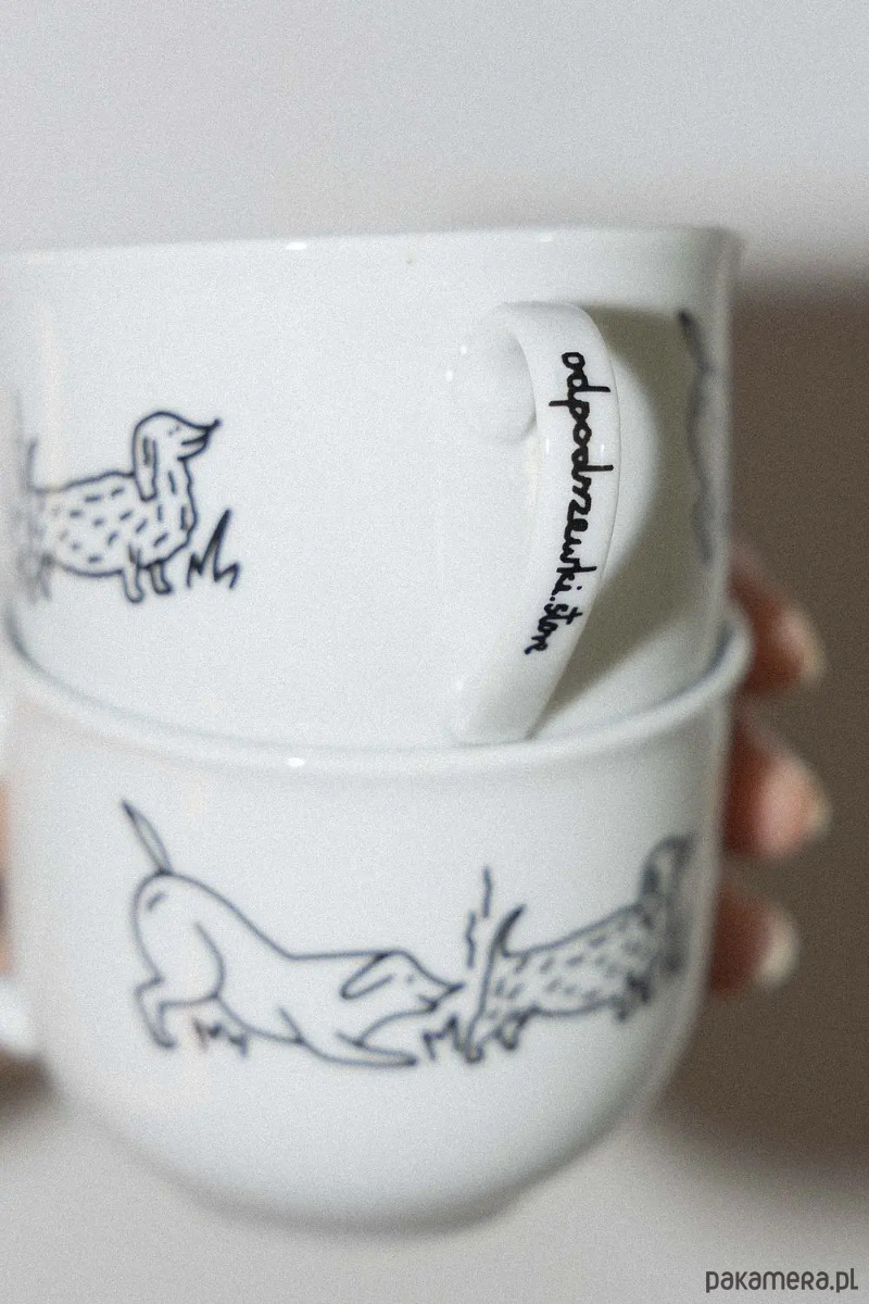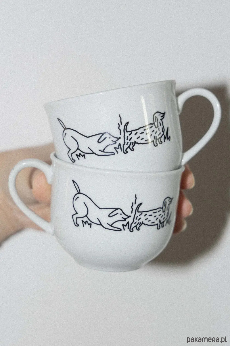 Ceramika z któregoś obiegu została przygarnięta z grupy internetowej, znaleziona na śmietniku lub na pchlim targu. Techniką kalkomanii została nałożona na nią autorska ilustracja. Naczynie może posiadać drobne rysy, które nie przeszkadzają w użytkowaniu.