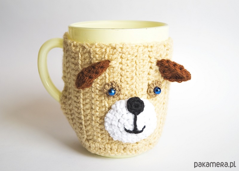 Ocieplacz na kubek, ręcznie wykonany na szydełku z włóczki.