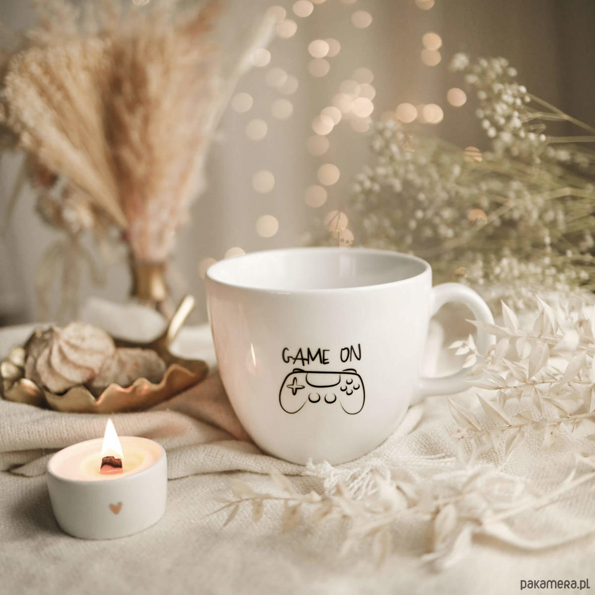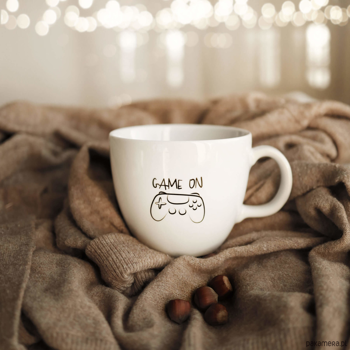 Gruba porcelana, z której jest wykonany kubek gamera, nie pozwoli, by napój wystygł zbyt szybko. Długo zachowa temperaturę, ciesząc właściciela ciepłem i aromatem napoju. A może wykorzystasz tak duży kubek na coś jeszcze innego? Wyobraź sobie, jak ładnie prezentować się będą ciasteczka i przekąski w nim podane. A pomieści się w nim naprawdę wiele.