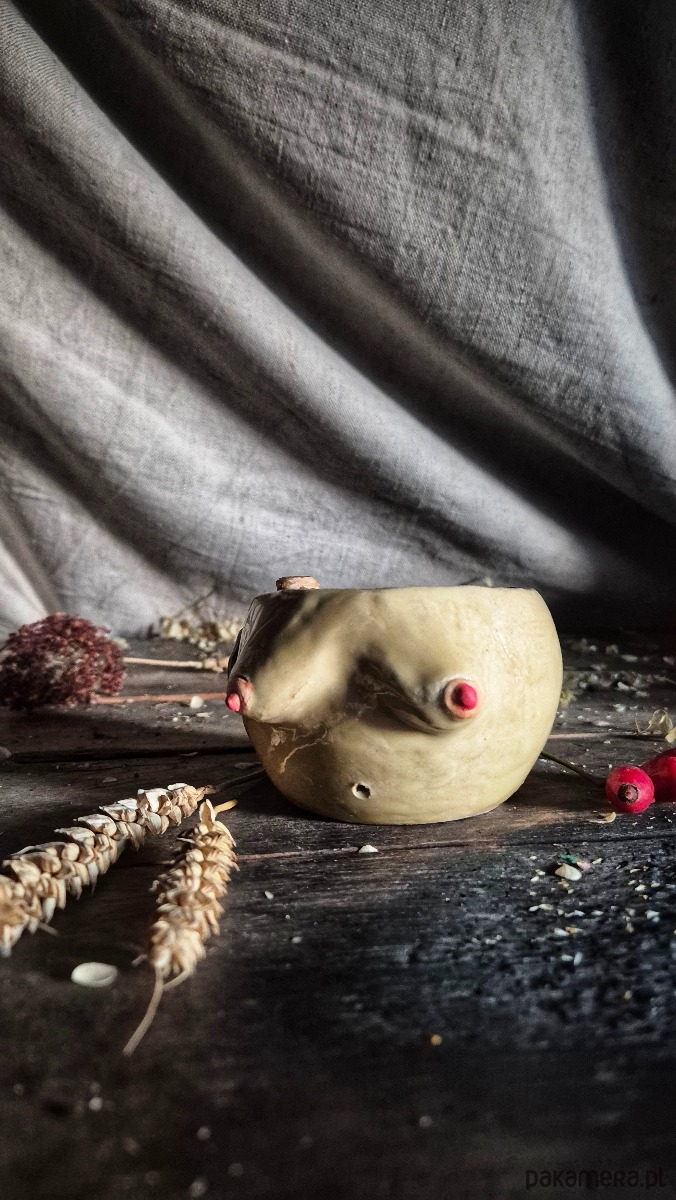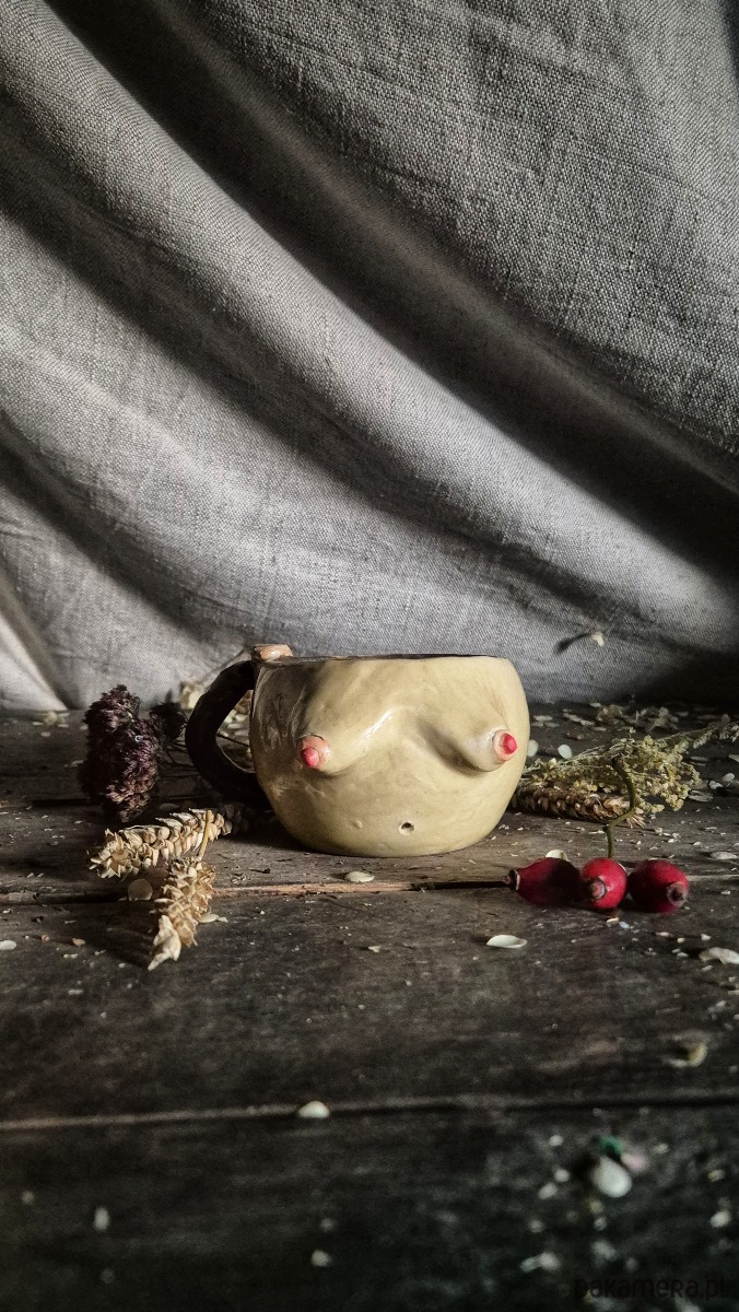 Toczony i rzeźbiony kubek 250 ml na cappuccino z cycuszkami
