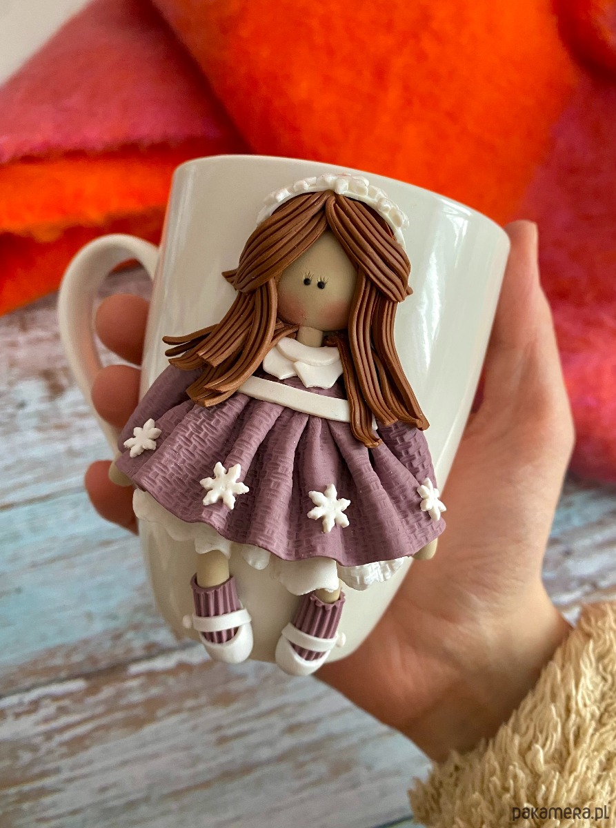 Kubek 2D z dekorem z gliny polimerowej kolekcja zimowa - ADA