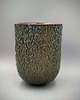 Ceramiczny kubek ręcznie wykonany z mocno spieczonej kamionki, inspirowany mikrostrukturami form organicznych, wewnątrz szkliwiony brązowym szkliwem, na zewnątrz zielono brązowym. Szkliwo przeznaczone do kontaktu z żywnością, można myć w zmywarce. Wymiary: wysokość ok.11,5cm, średnica ok.8,5cm