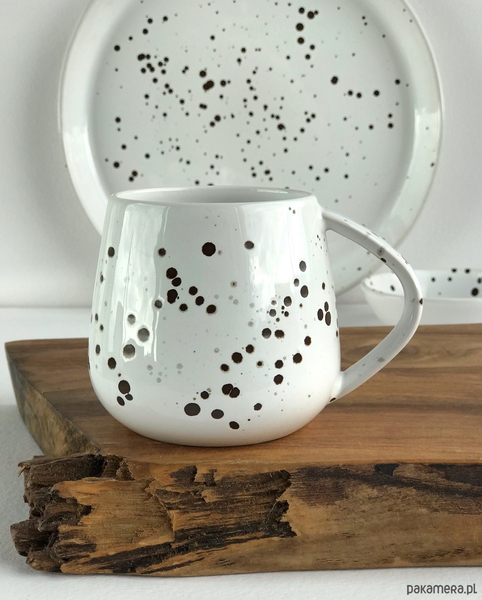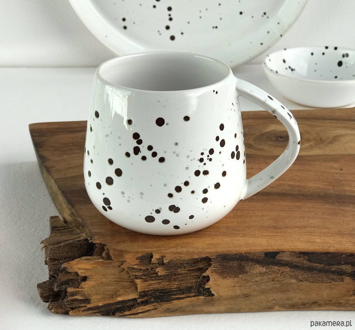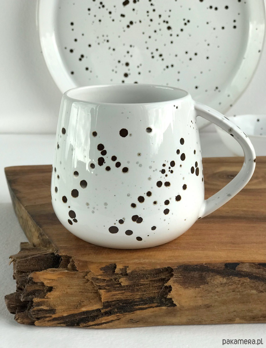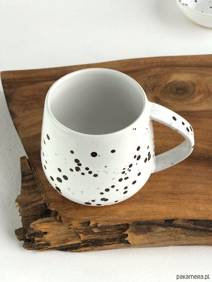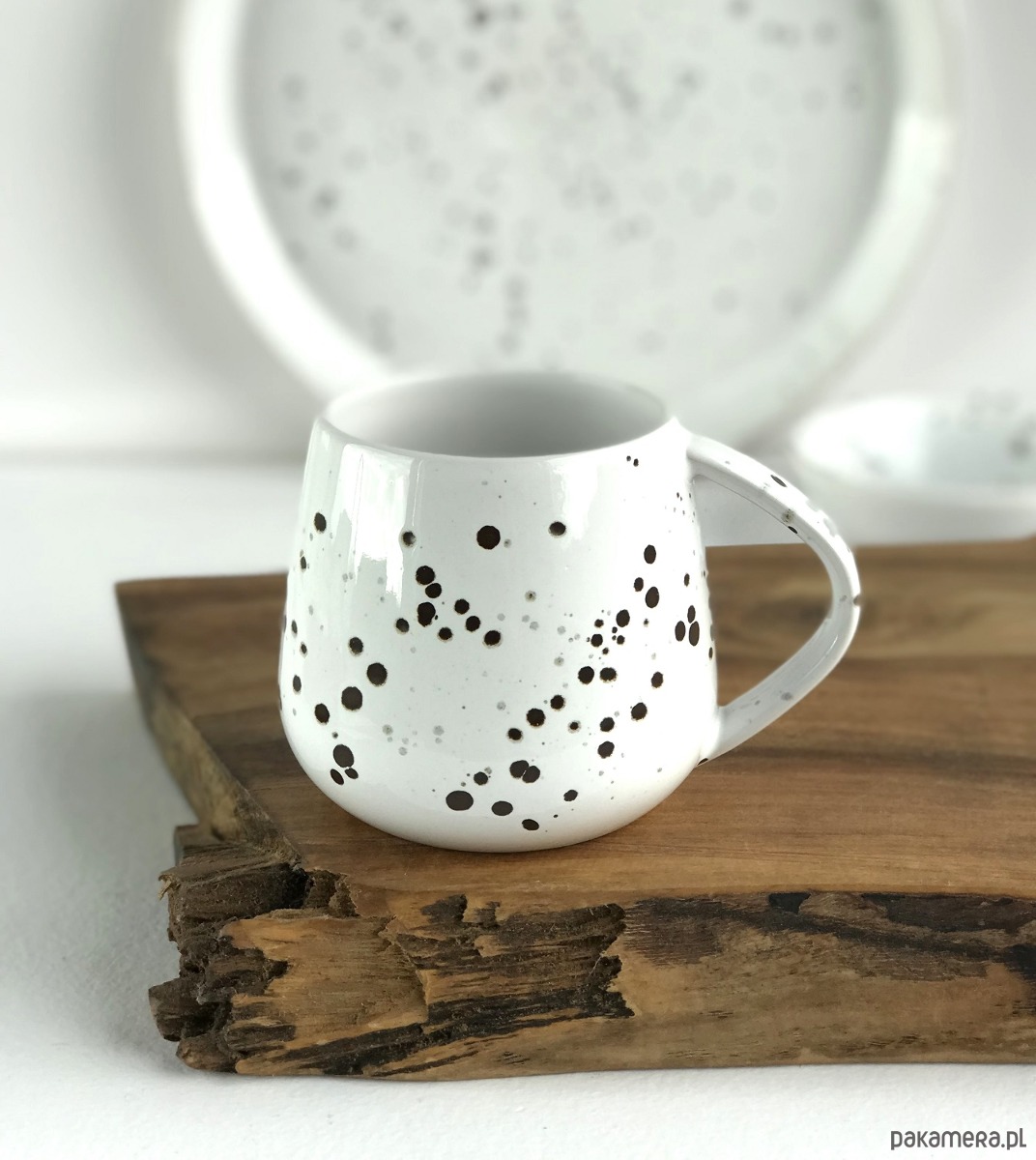 Kubek Beczułka ręcznie robiony 320 ml biały w kropki Dalmatyńczyk