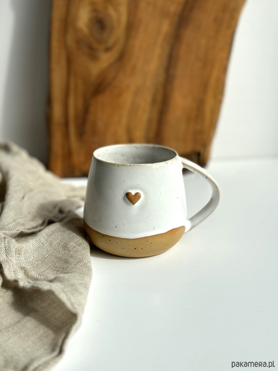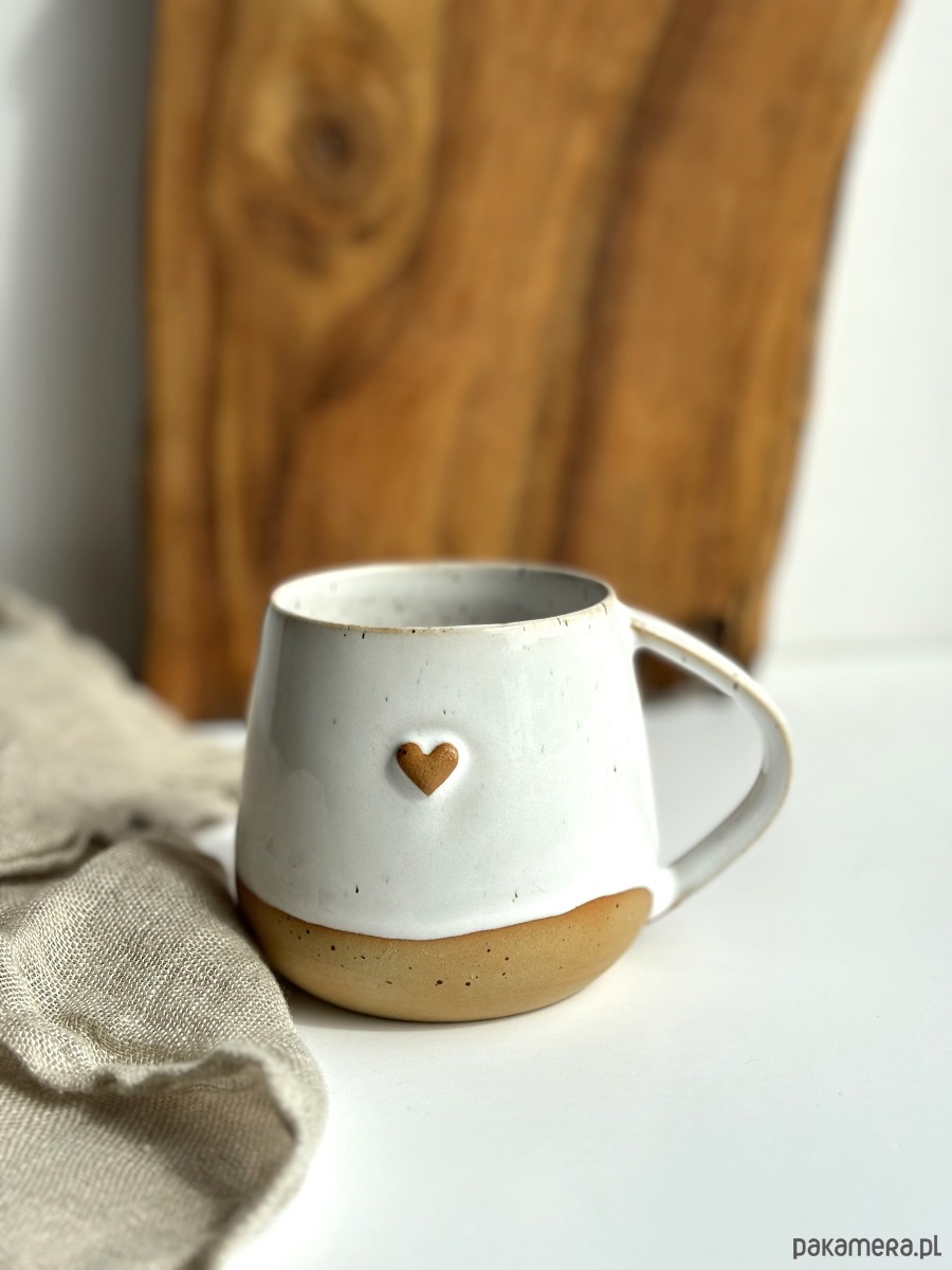 Kubek Beczułka ręcznie robiony 320 ml - Biały z sercem