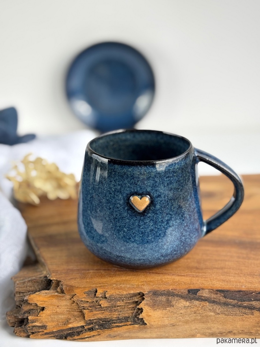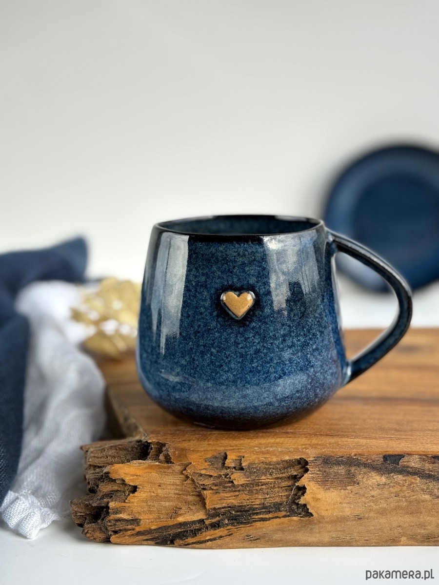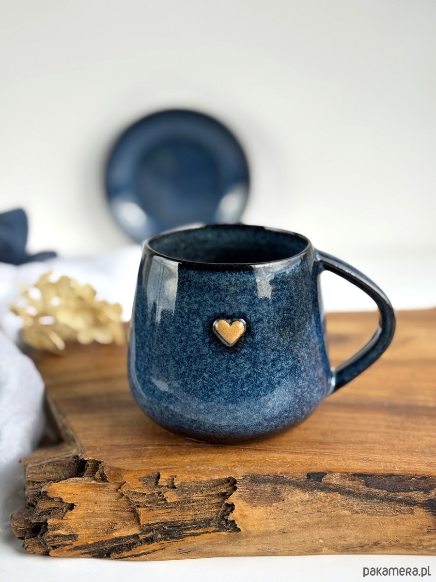 Kubek Beczułka ręcznie robiony 320 ml - Granatowy z sercem