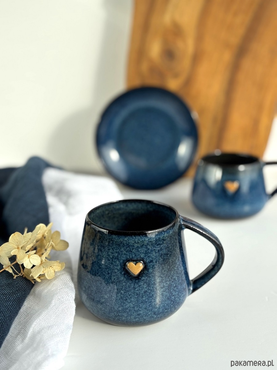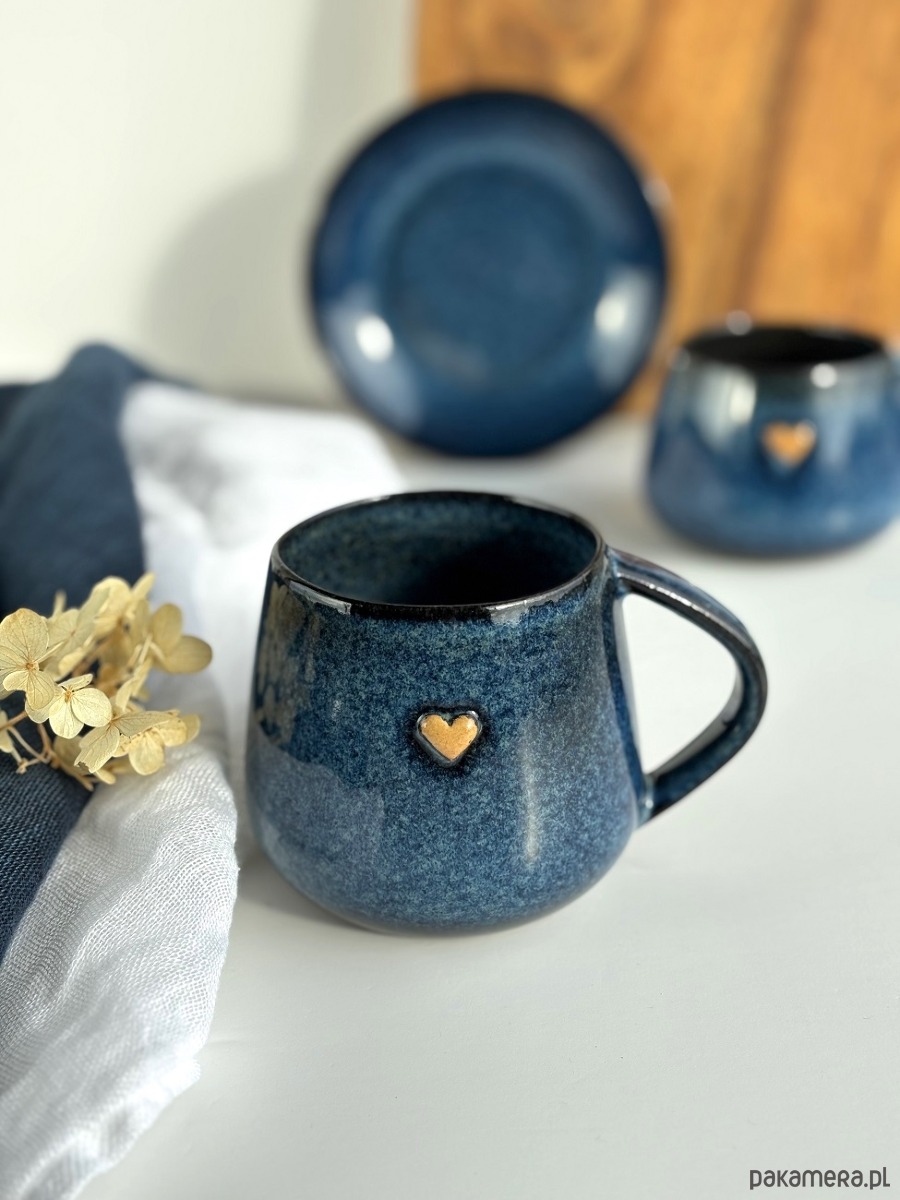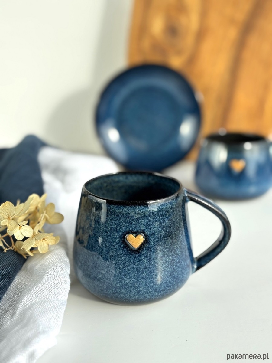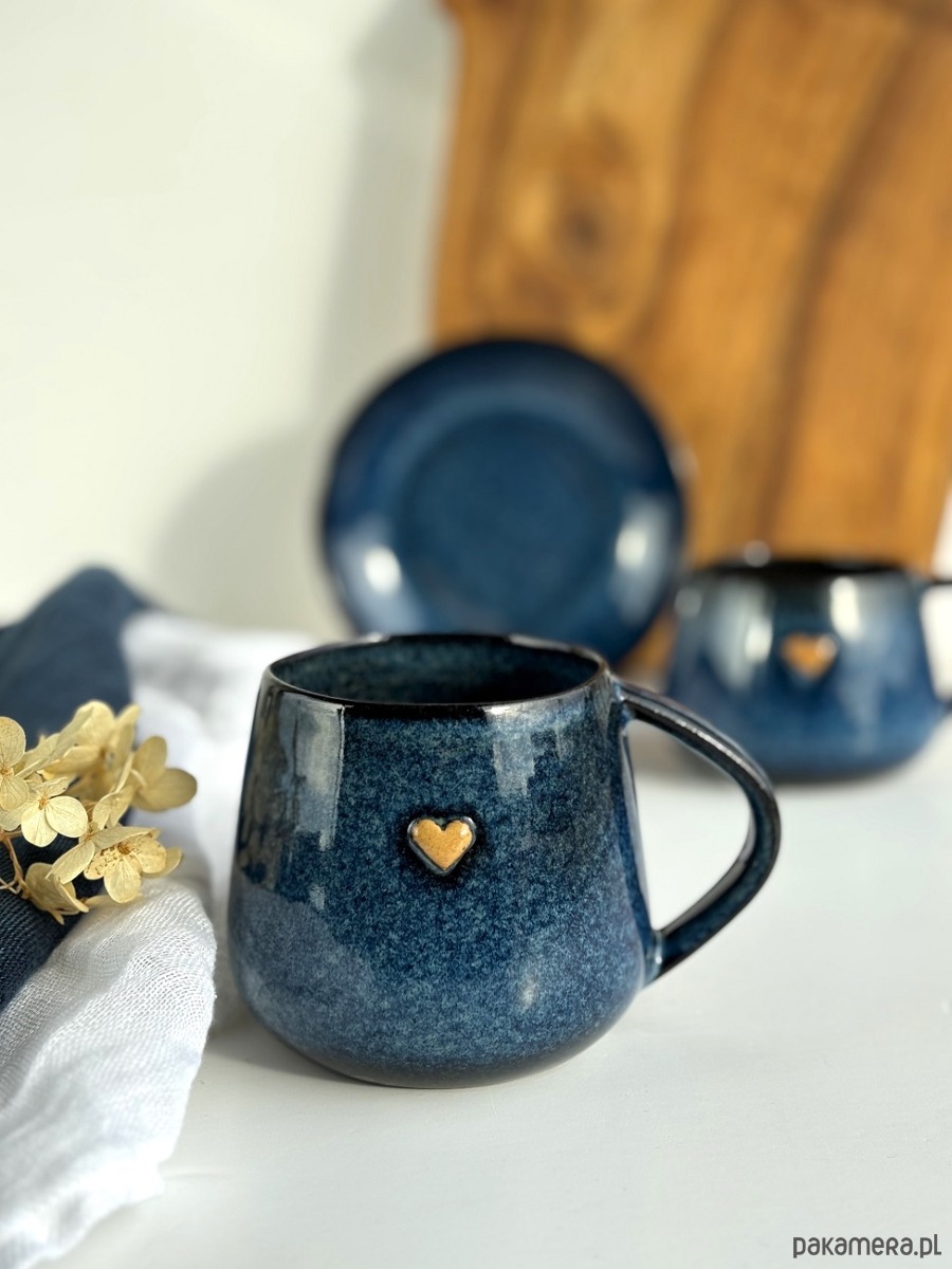 Kubek Beczułka ręcznie robiony 320 ml - Granatowy z sercem