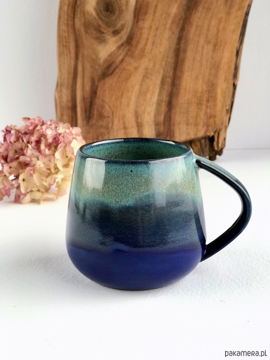 Ręcznie robiony kubek ceramiczny - Idealny do ulubionej kawy lub herbaty o pojemności około 320 ml.