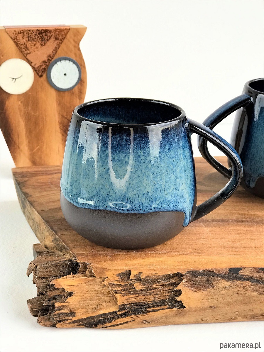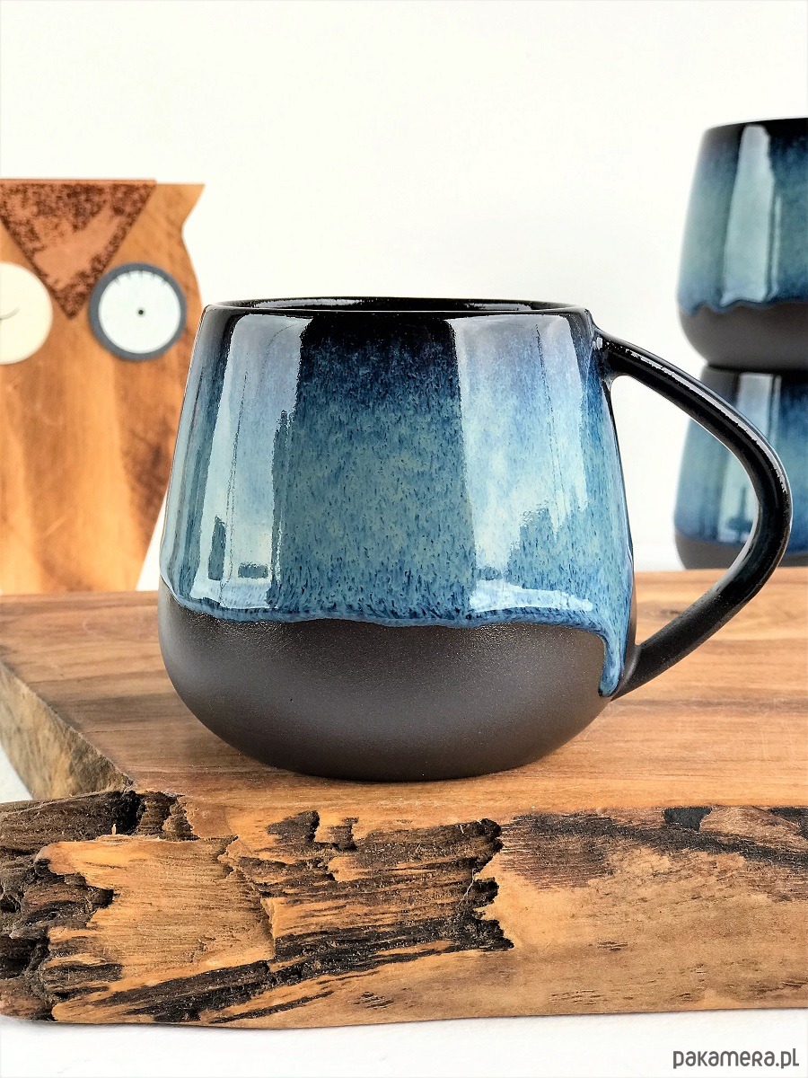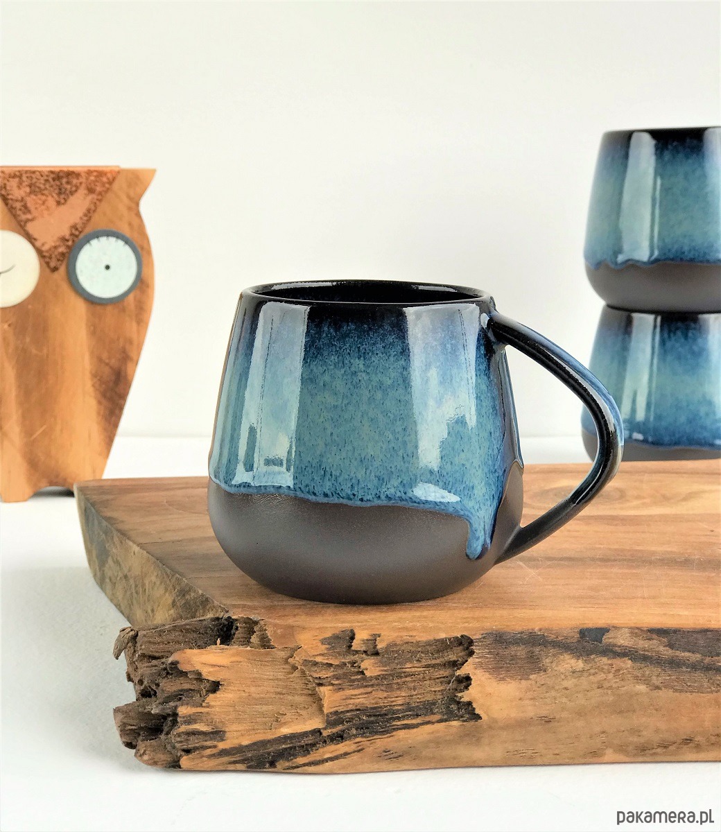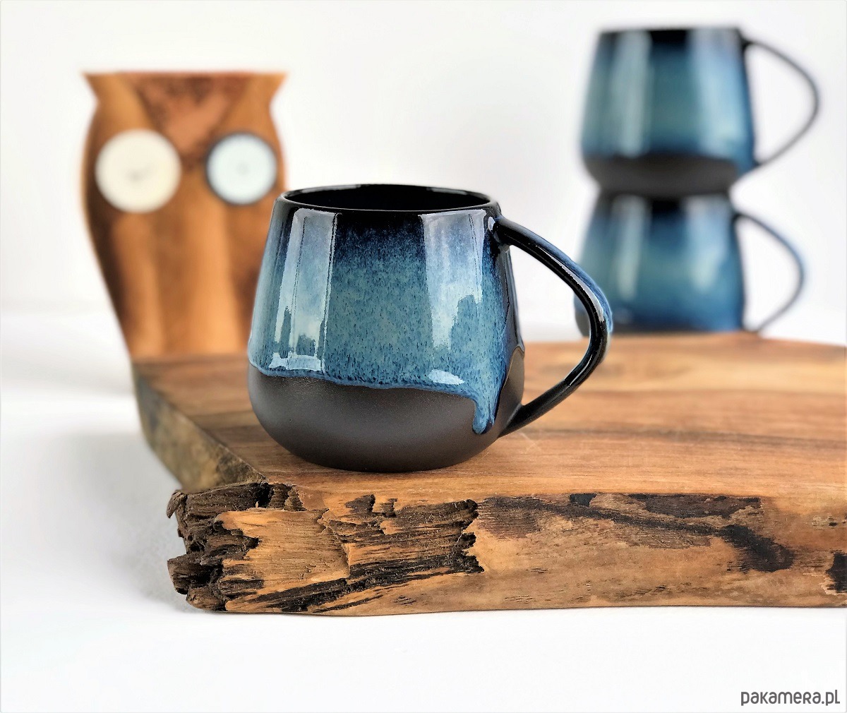 Ręcznie robiony niebieski kubek ceramiczny z kolekcji Nocne niebo.
