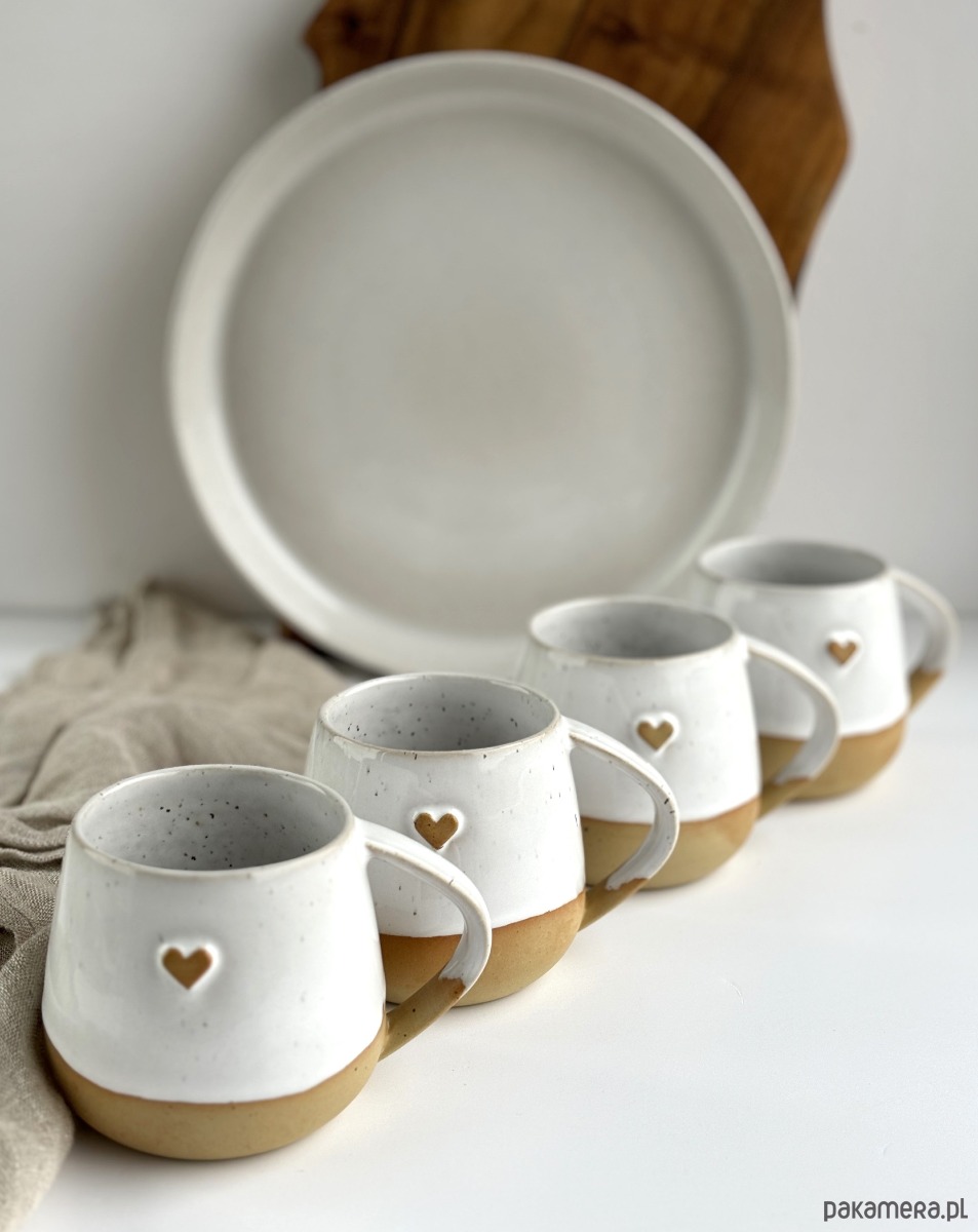 Ręcznie robiony kubek ceramiczny beczułka biały z sercem.