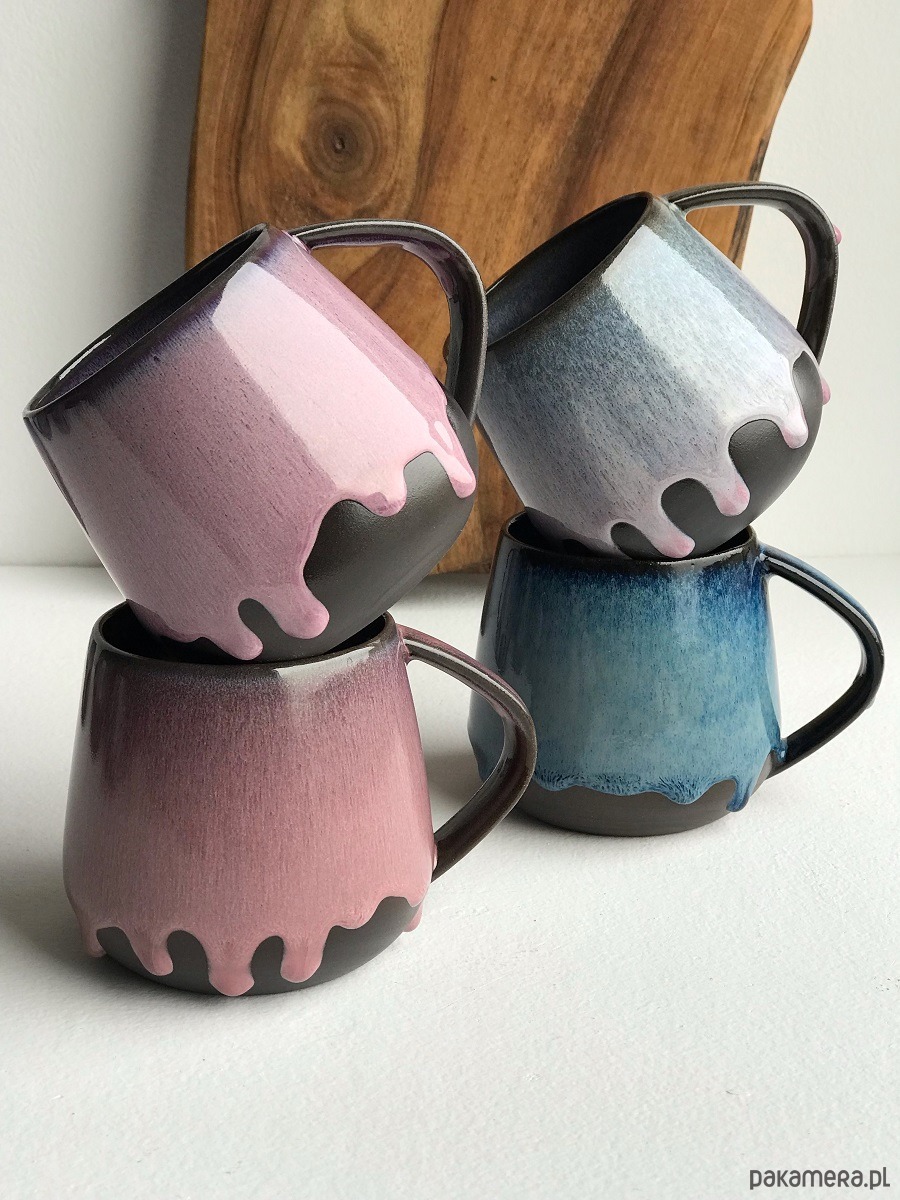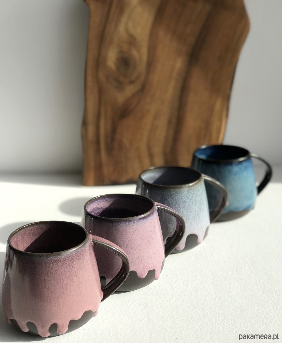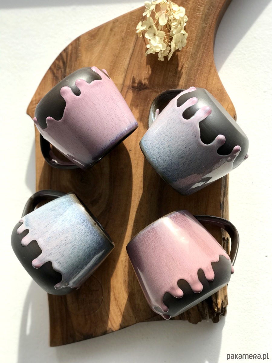 Kubki wykonane z ciemnoczekoladowej masy ceramicznej i szkliwione szkliwem spożywczym przeznaczonym do kontaktu z żywnością.