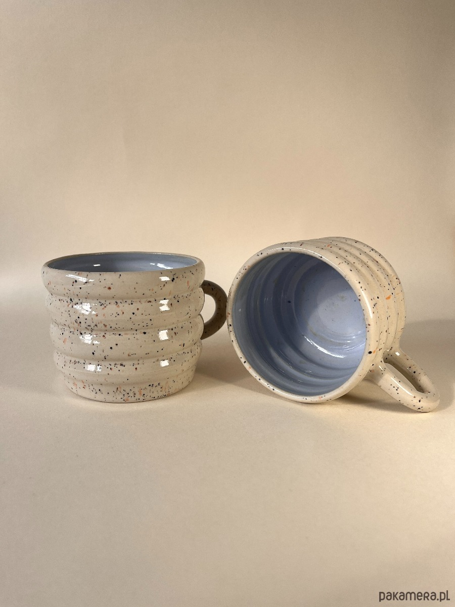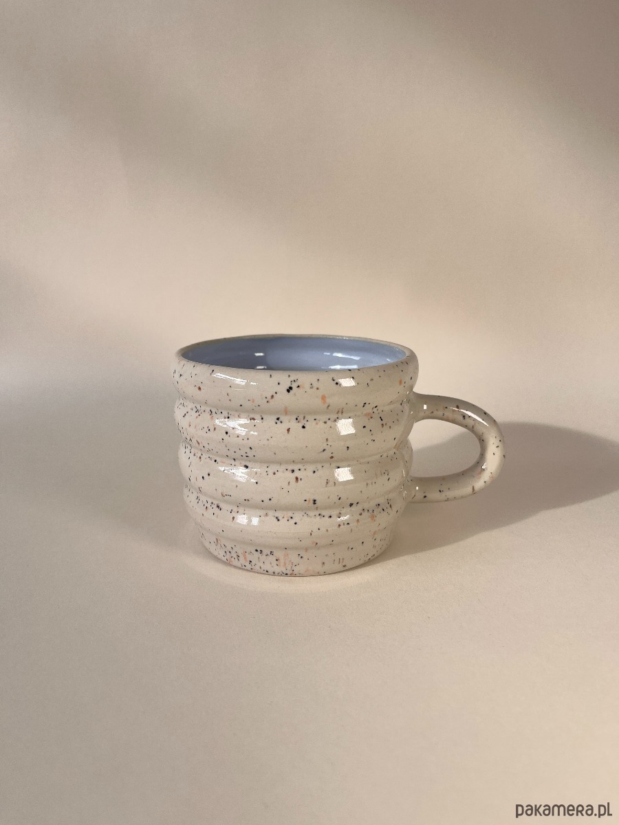 Kubek o charakterystycznym, zaokrąglonym kształcie przypominającym brzuszek. Ręcznie wykonana na kole garncarskim. Delikatny beżowy kolor na zewnątrz idealnie komponuje się z błękitnym wnętrzem. Minimalizm, który czuć w dłoniach - idealna do spokojnych rytuałów dnia.