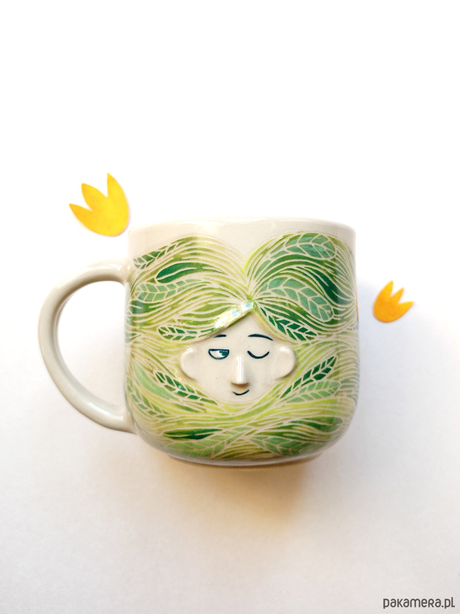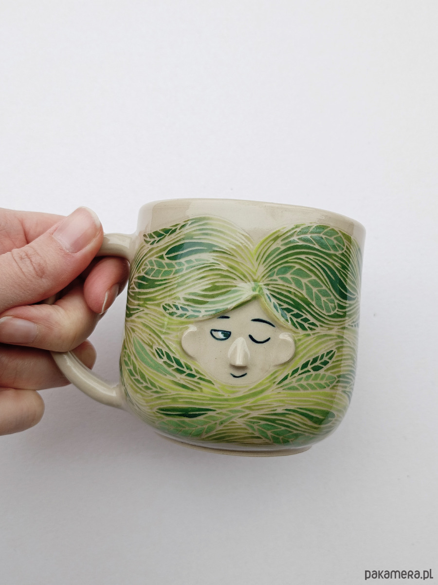 Kubek wykonany w technice sgraffito - wzór jest ręcznie wyryty na kubku, przez co jest niepowtarzalny!