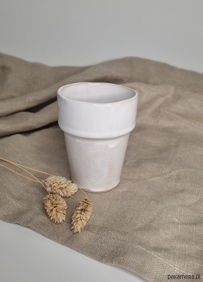Mały minimalistyczny kubeczek ceramiczny. Idealny do nowoczesnego wnętrza. Nie ma dwóch identycznych egzemplarzy.