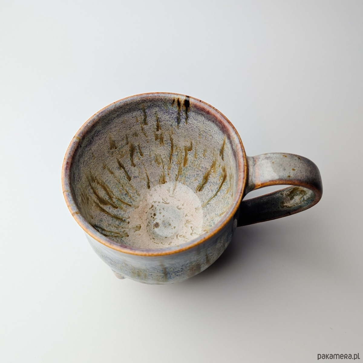 Kubek wytoczony na kole garncarskim, dwukrotnie wypalony w wysokiej temperaturze. Z powodzeniem można myć go w zmywarce.
