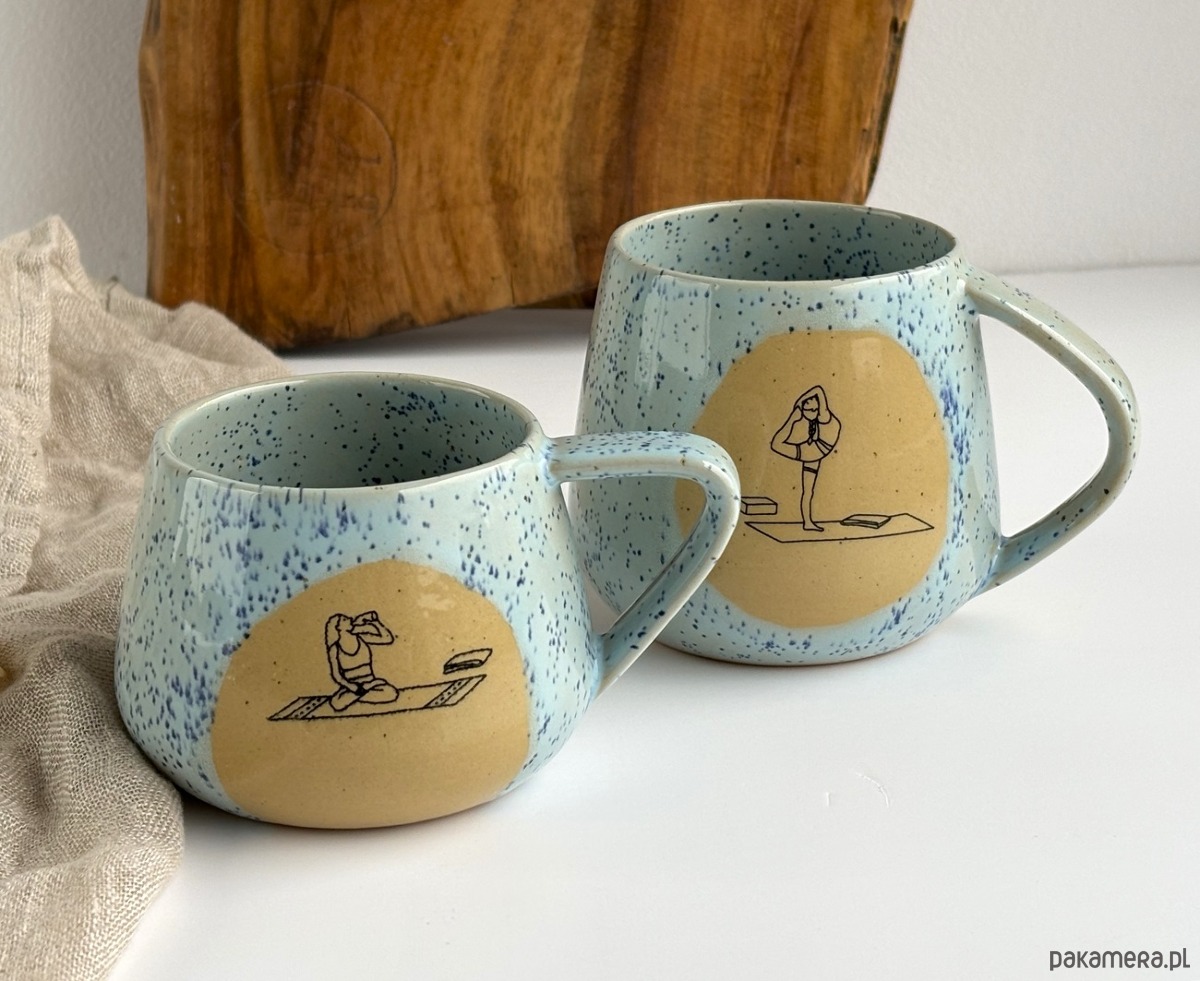 Niebieski ręcznie robiony kubek ceramiczny - Joga