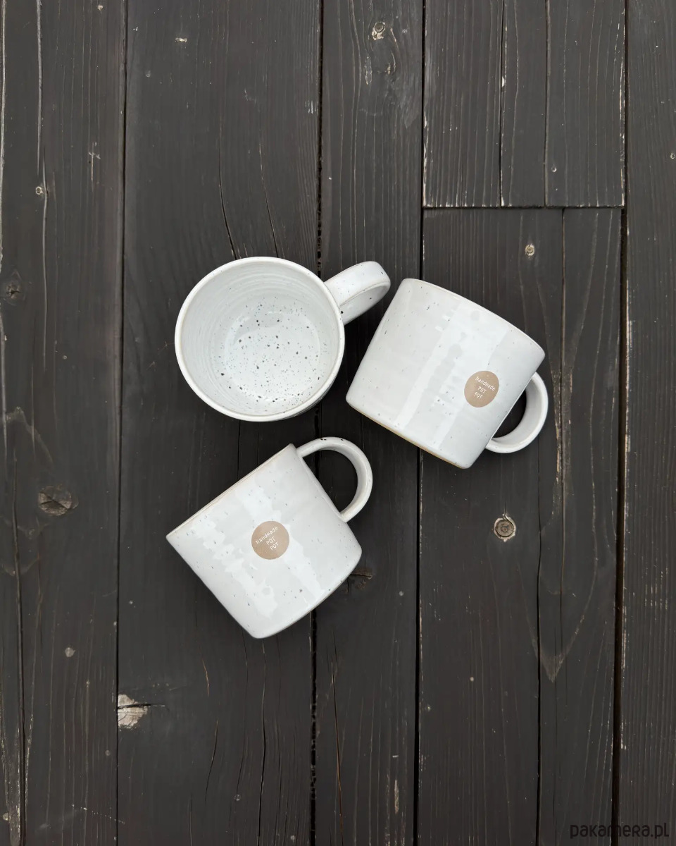 Ceramiczny Kubek SA Milkyway 350 ml to połączenie prostoty i magii nocnego nieba zamknięte w codziennym naczyniu. Ręcznie wykonany kubek, którego biała baza ozdobiona jest subtelnymi granatowymi kropkami, nawiązującymi do mlecznej drogi – symbolu spokoju, tajemnicy i naturalnego piękna.