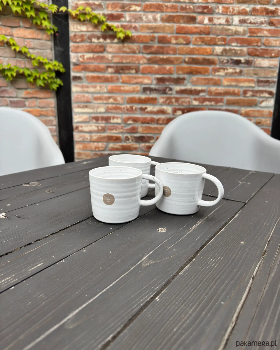 Kubek o pojemności 350 ml świetnie sprawdzi się na ulubioną kawę, herbatę czy kakao. Jego wygodny kształt i solidny uchwyt zapewniają komfort użytkowania, a większa pojemność pozwala cieszyć się napojem bez konieczności częstego dolewania.