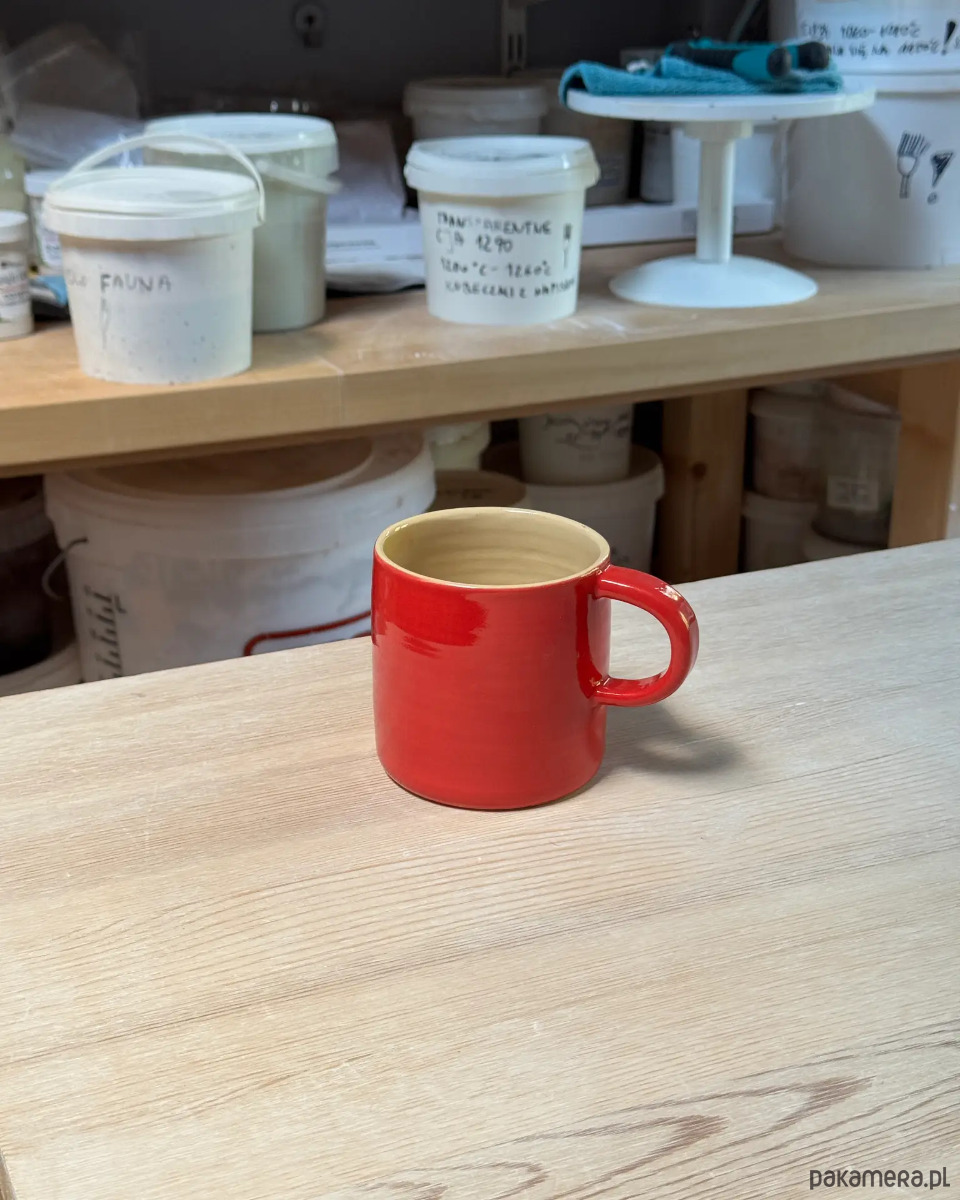 Red Mug od Pot Pot, wyrazisty kubek ceramiczny w intensywnej czerwieni, wykonany ręcznie z wysokiej jakości ceramiki artystycznej. Jego żywy kolor dodaje energii każdej chwili – idealny na poranną kawę, aromatyczną herbatę czy gorącą czekoladę. Ręcznie robiony kubek łączy trwałość, unikalny charakter i nowoczesny design, będąc wyjątkowym dodatkiem do kolekcji ceramicznych naczyń handmade.