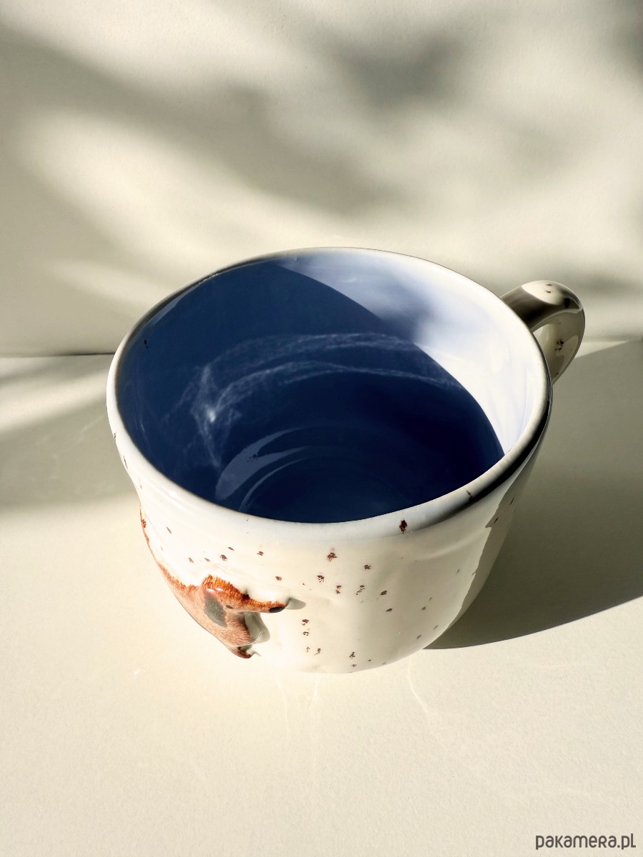 Kubek ceramiczny ręcznie wykonany w podpoznańskiej pracowni. Wewnątrz błękitne szkliwo, na zewnątrz białe szkliwo nakrapiane. Na kubeczku znajduje się jamniczek, każdy inny to prawdziwy rarytas dla wszystkich psiarzy:-)