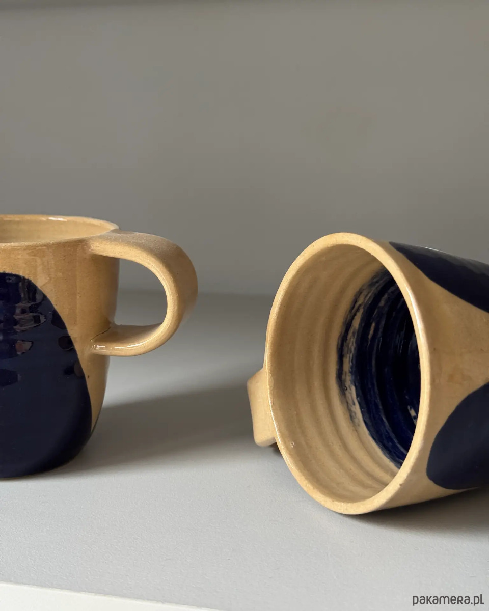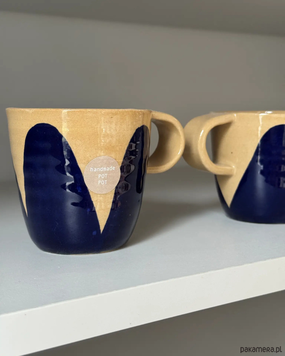 Każdy kubek powstaje w pracowni Pot Pot Shop w Bielsku-Białej, gdzie rzemiosło łączy się z pasją i dbałością o każdy detal. Kubek wykonany jest ręcznie z jasnej gliny i pokryty charakterystycznym szkliwem w odcieniach nocnego granatu, z delikatnym połyskiem i naturalnymi przebarwieniami, które nadają mu niepowtarzalny charakter vintage.