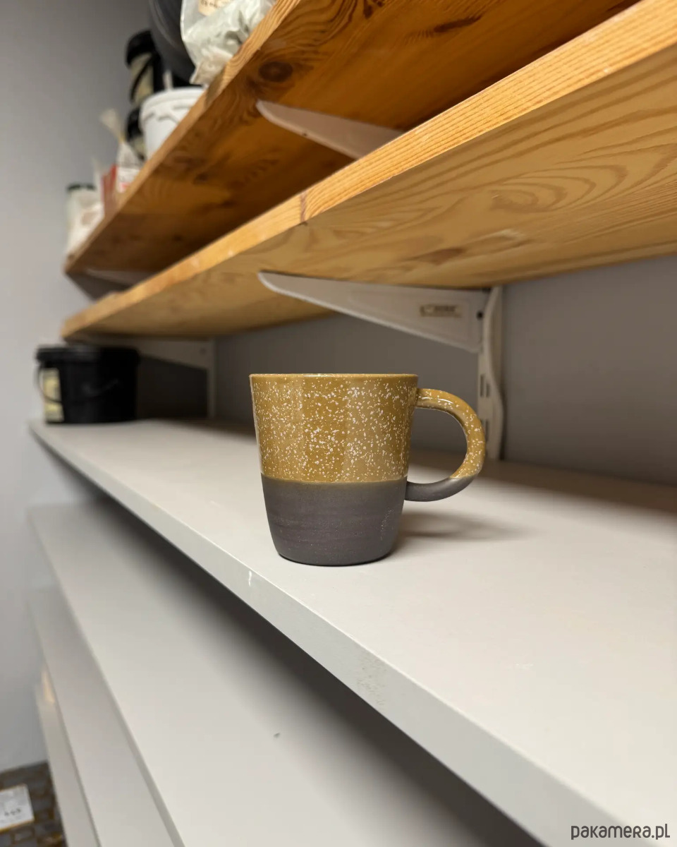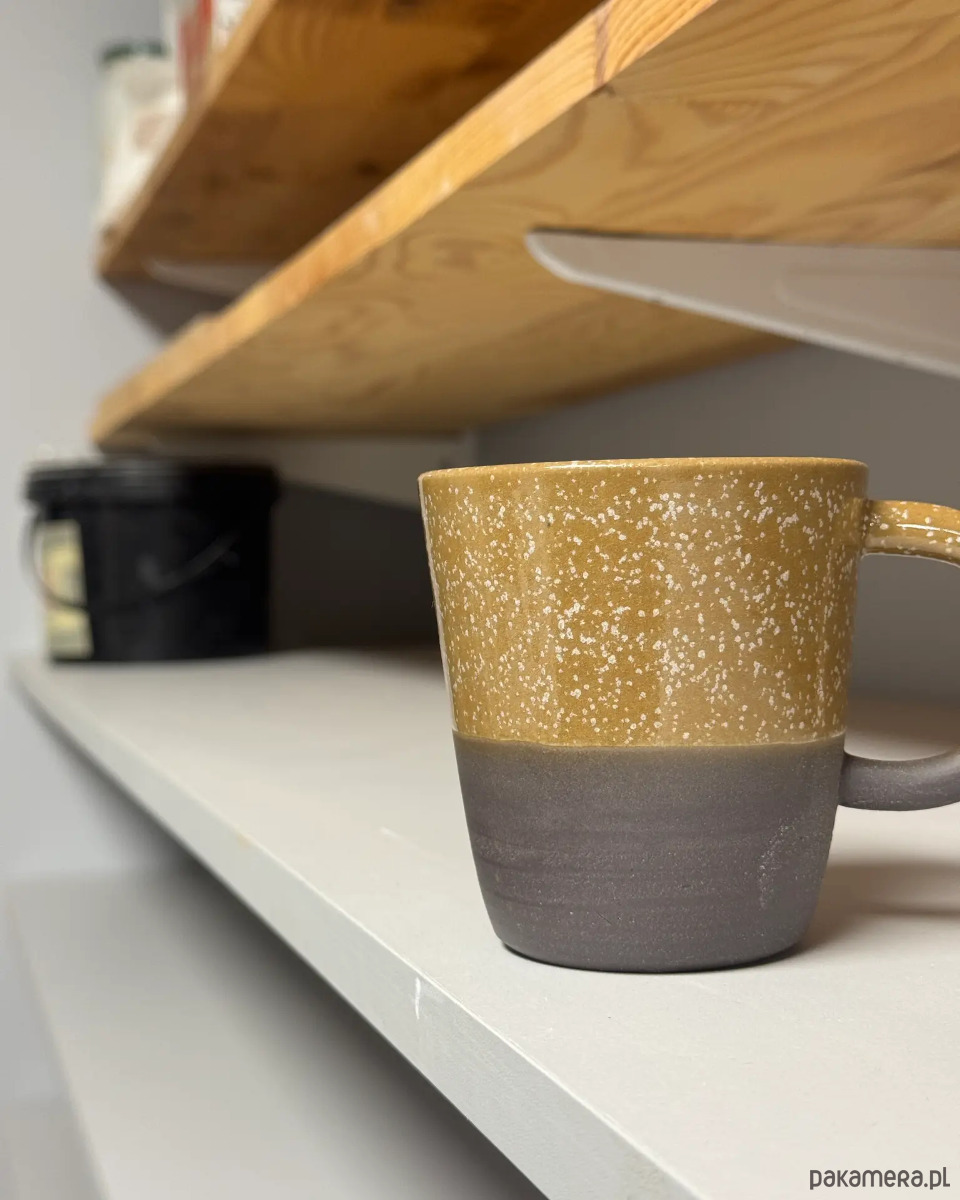 Wykonany został ręcznie z naturalnej gliny kamionkowej, która po wypale staje się wyjątkowo trwała i odporna na uszkodzenia. Kamionka to materiał idealny do naczyń codziennego użytku — nie chłonie zapachów, świetnie utrzymuje temperaturę napoju i doskonale współpracuje ze szkliwem. Kubek wypalany jest dwukrotnie, w wysokiej temperaturze (ok. 1220°C), co zapewnia jego wodoodporność i bezpieczeństwo w kontakcie z żywnością.