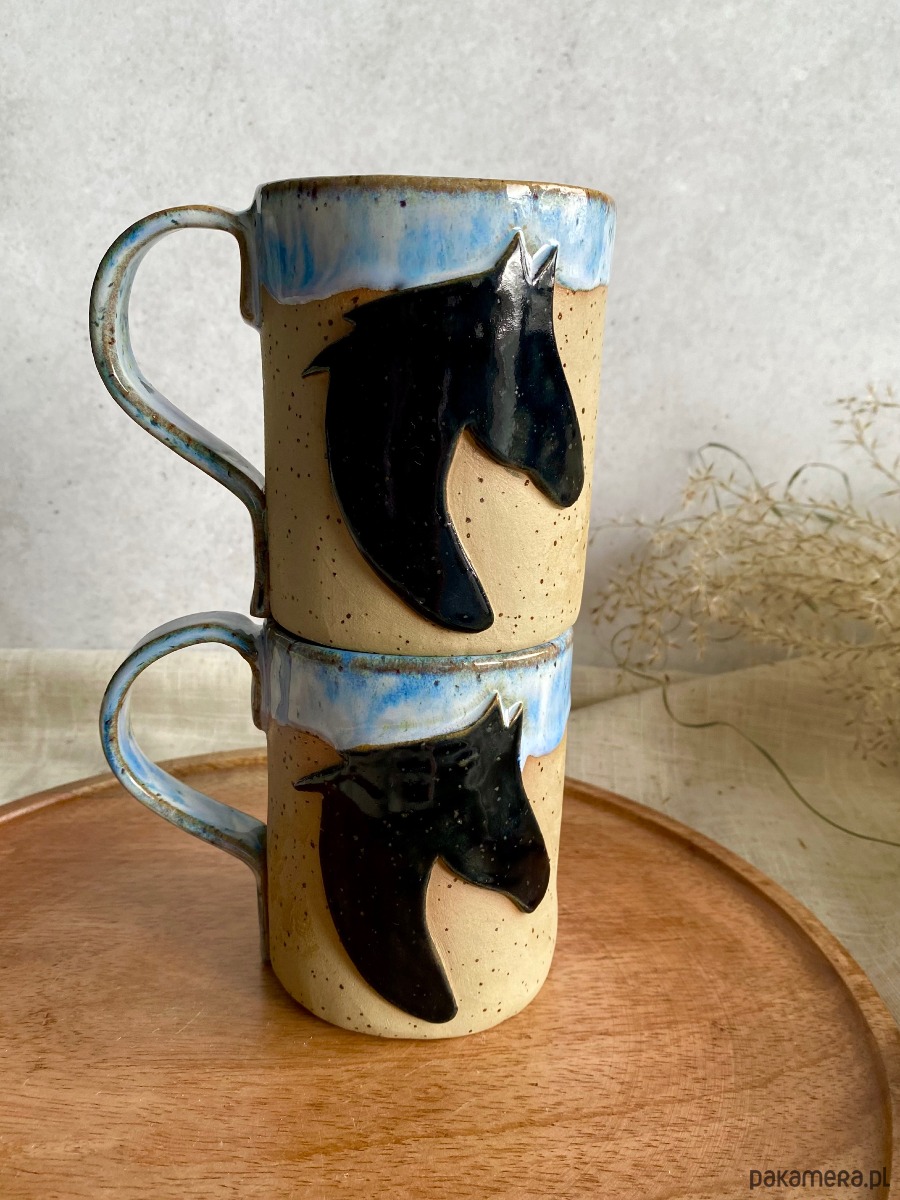 Kubek ceramiczny ręcznie lepiony KOŃ