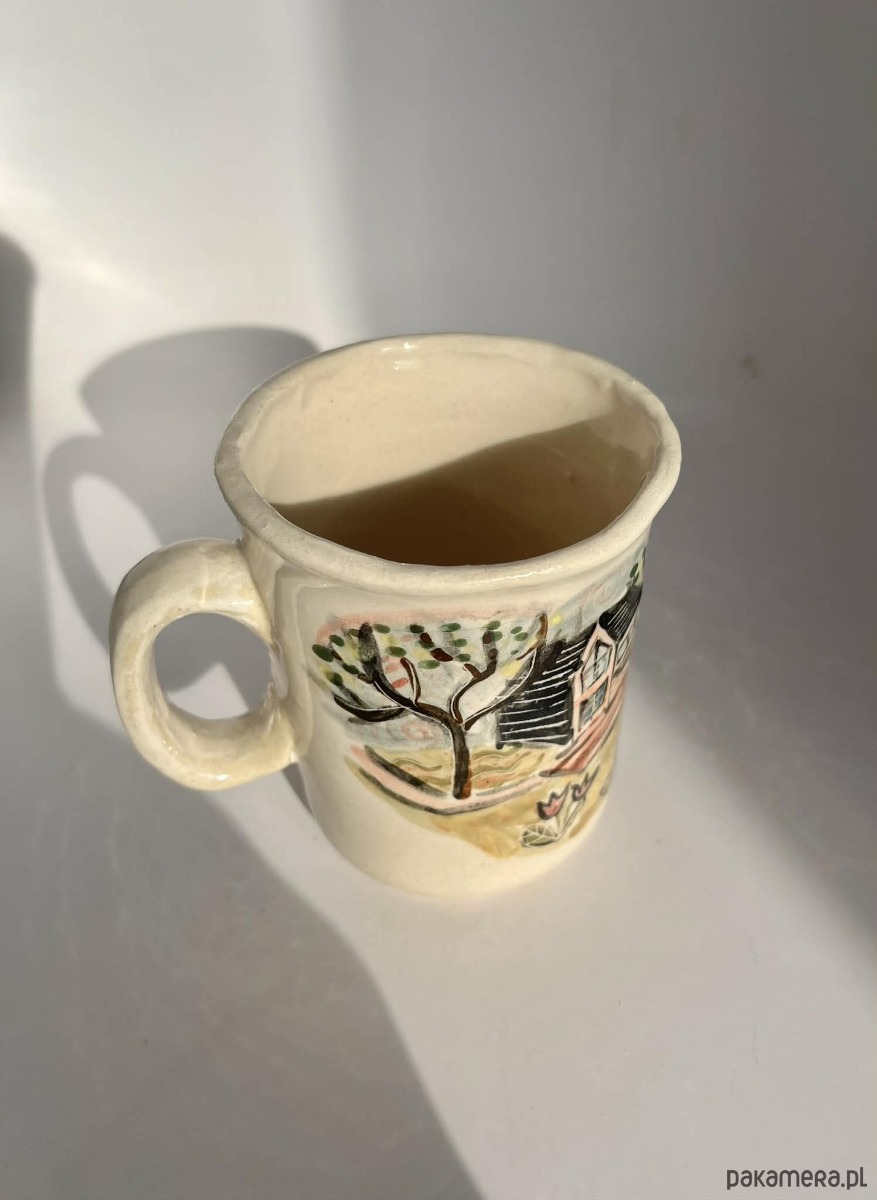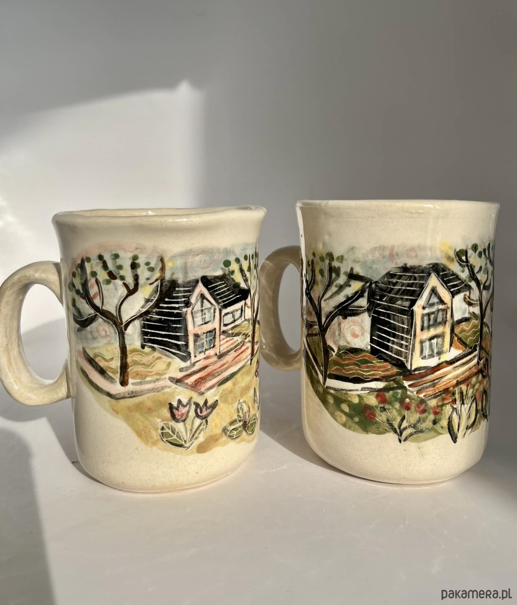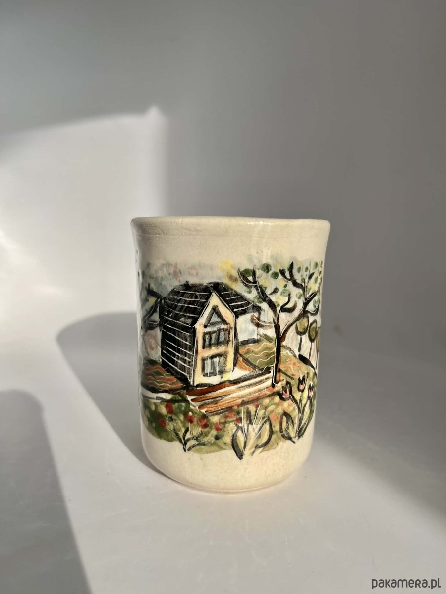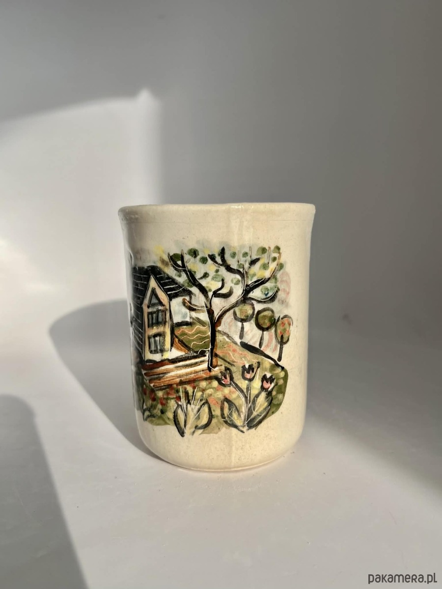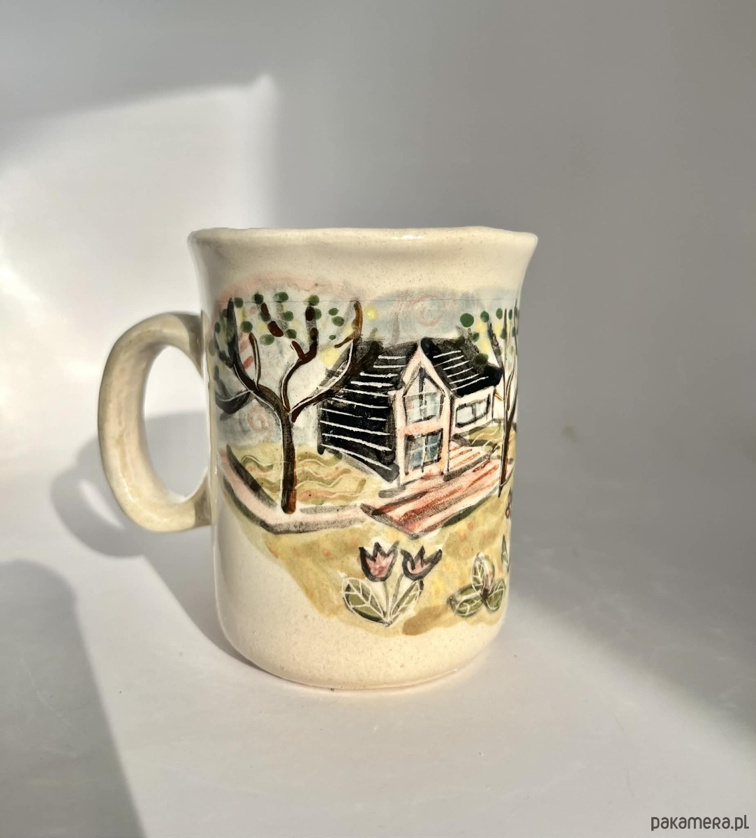 Kubek ceramiczny ręcznie malowany domek z ogrodem