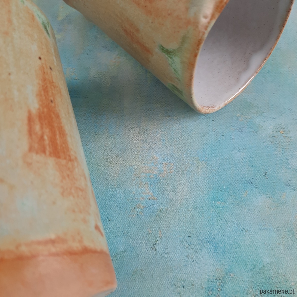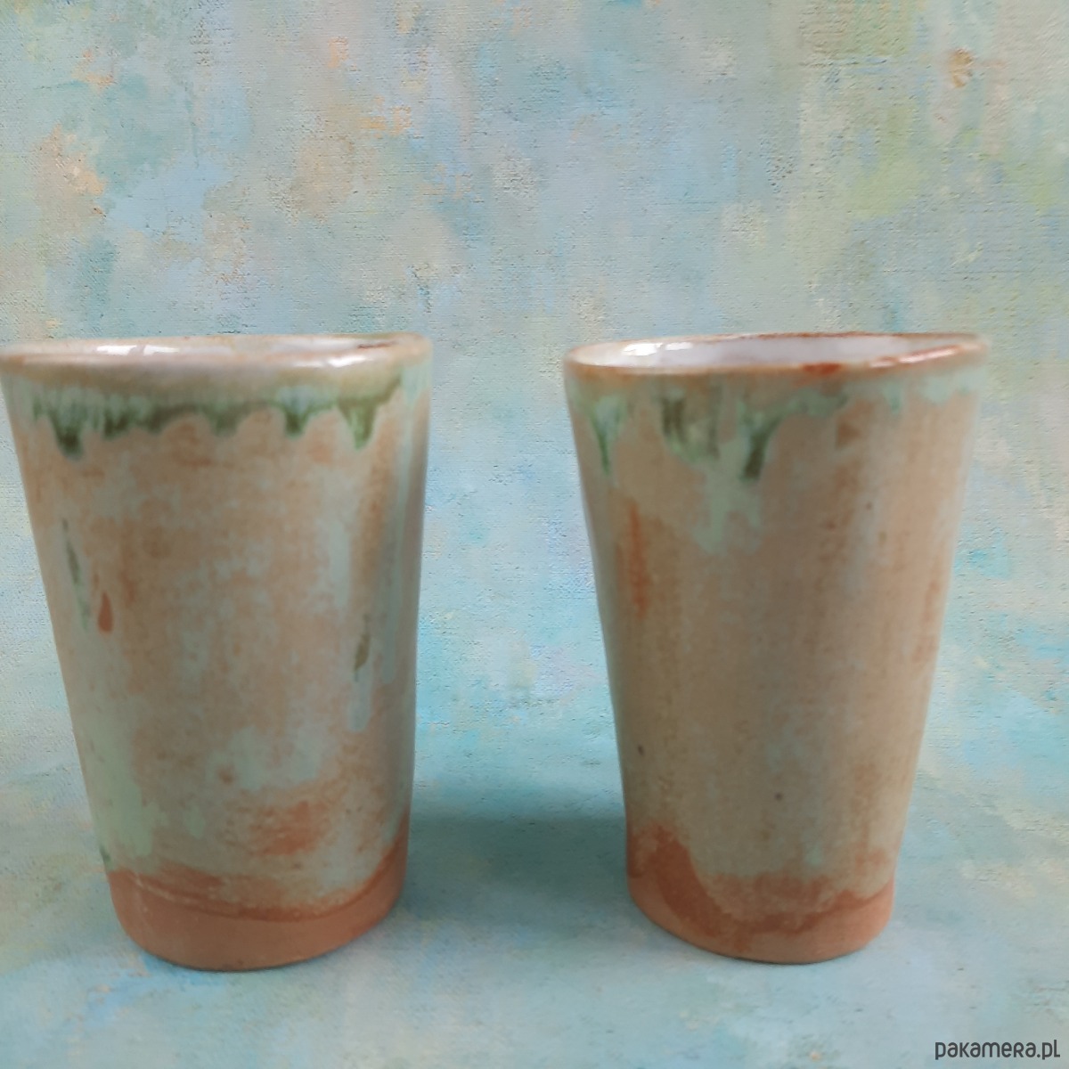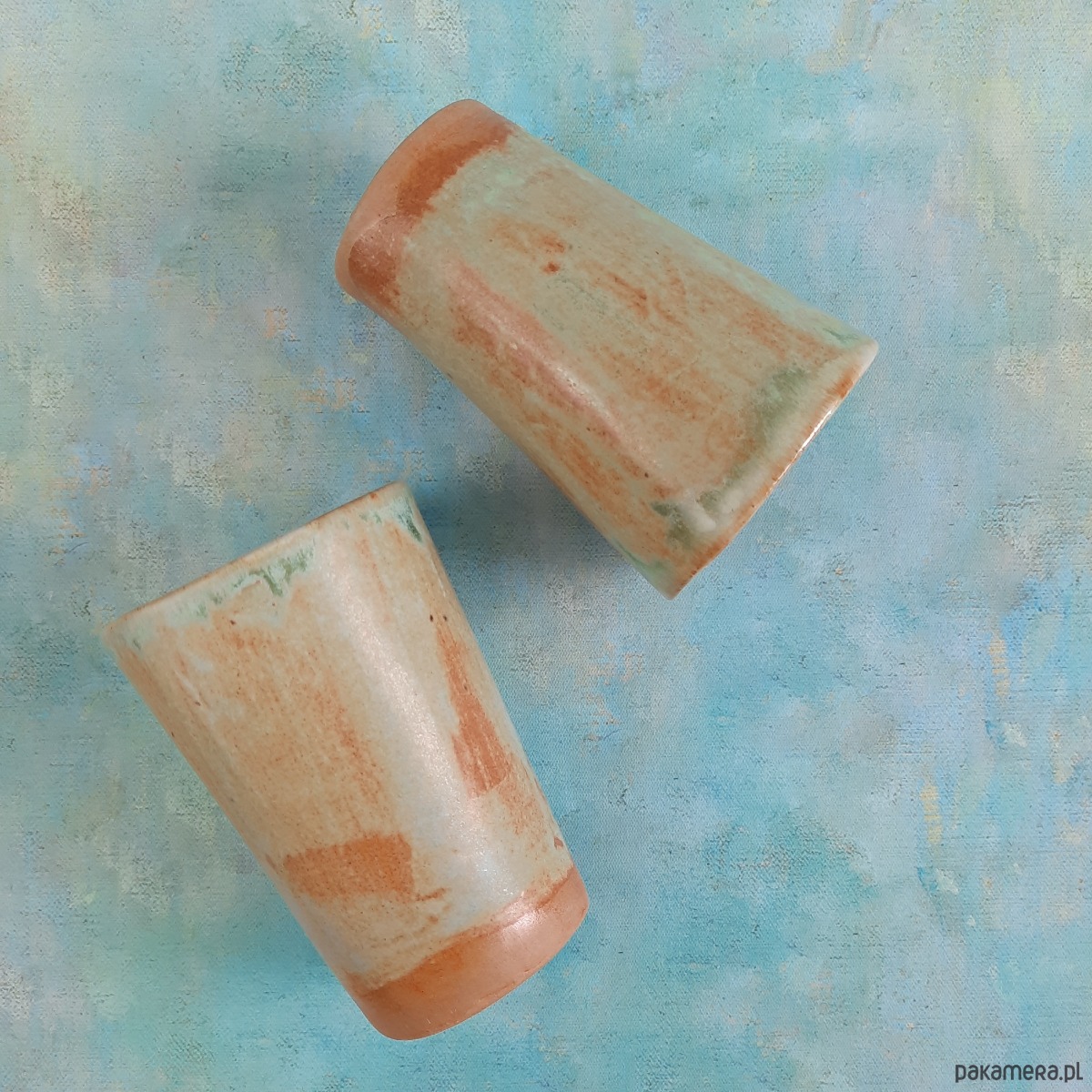 Efekt przypomina naturalne krajobrazy – ziemię, mgłę i krople wody. To połączenie kolorów nadaje kubkom spokojny, rzemieślniczy charakter.