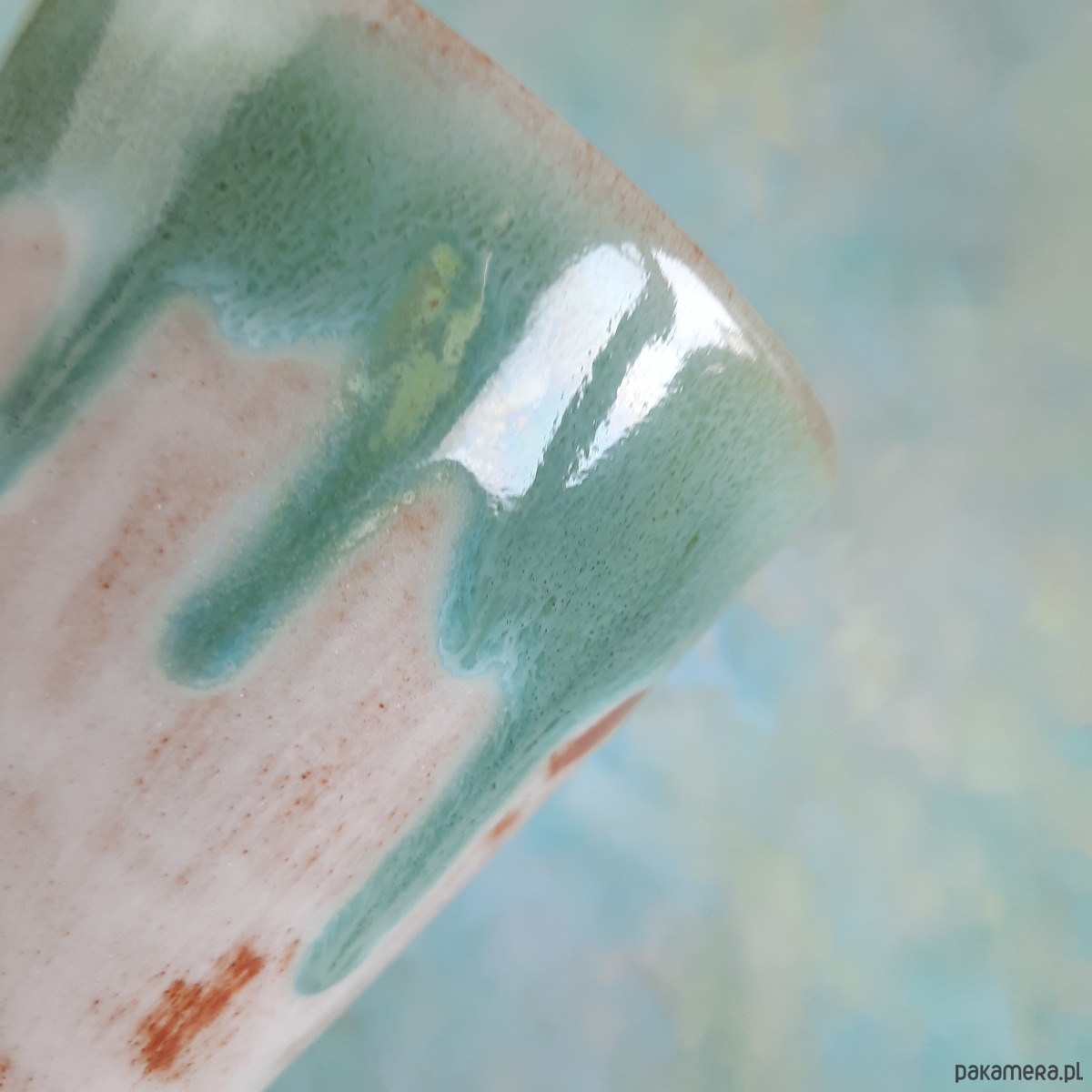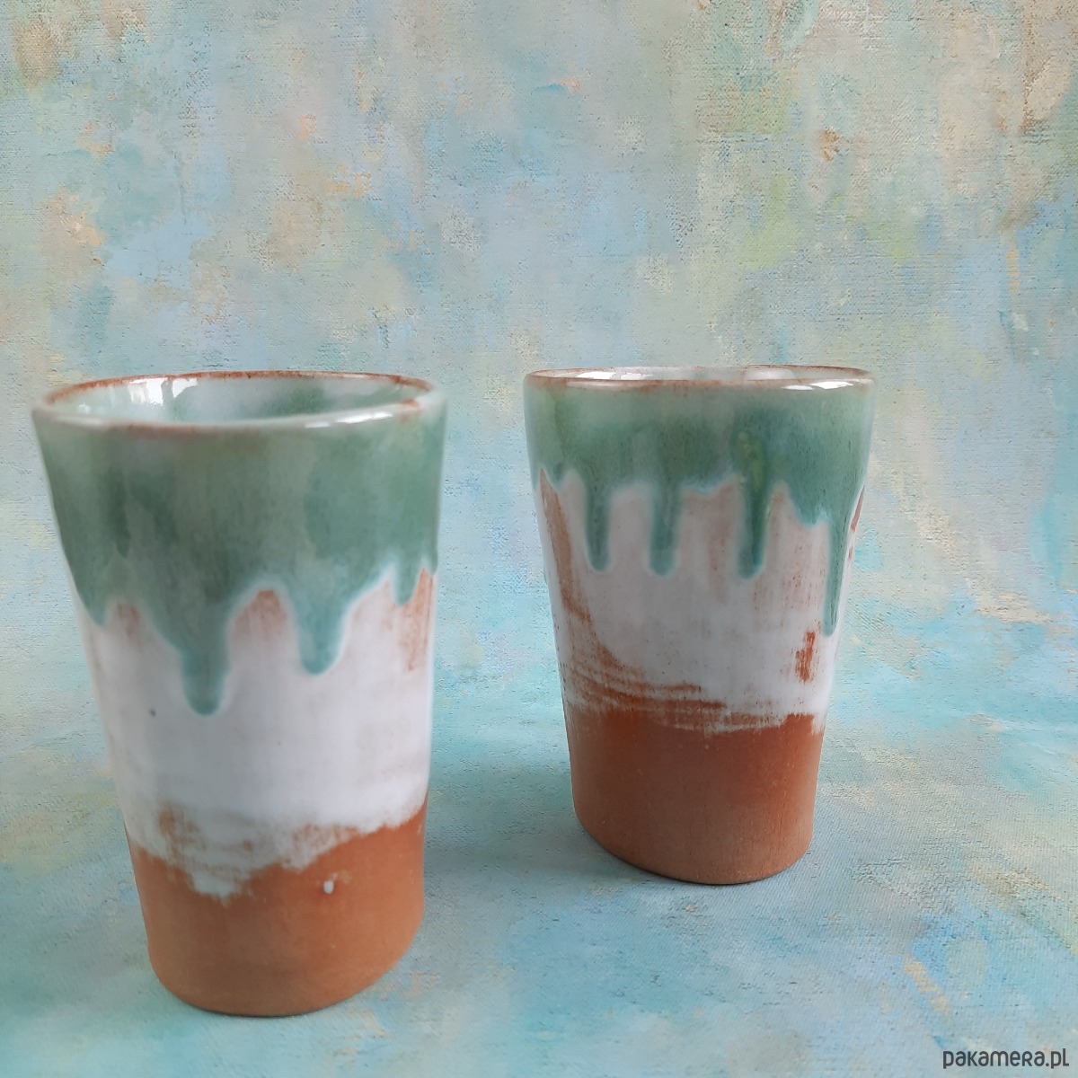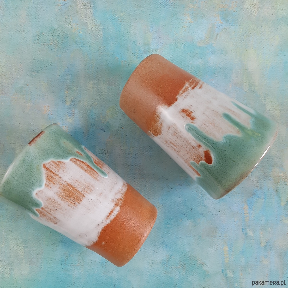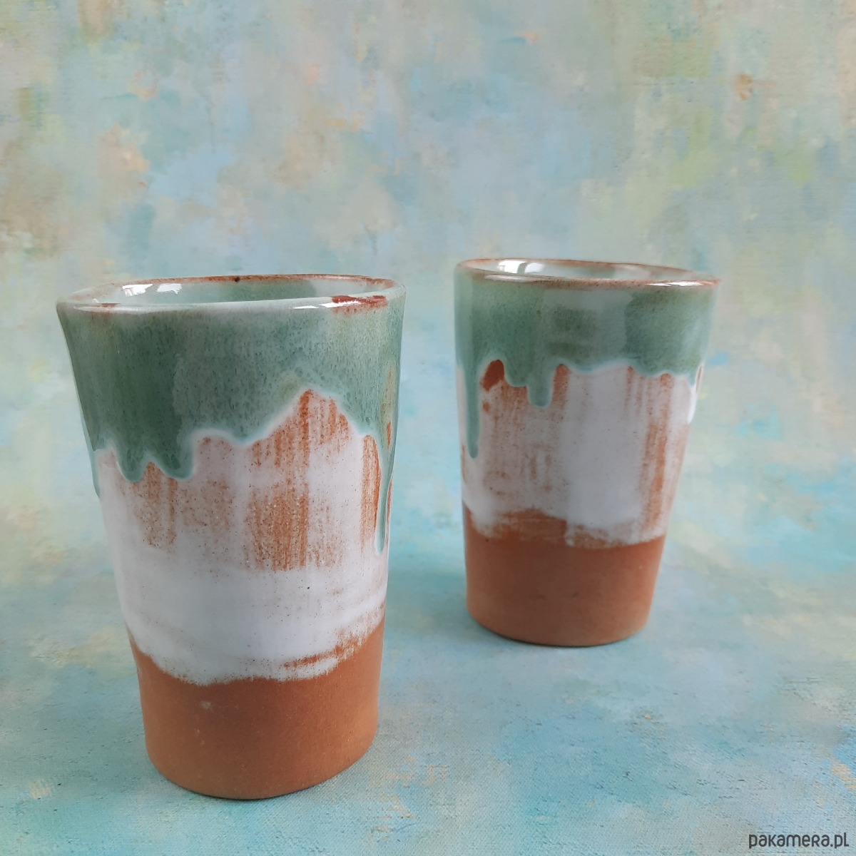 Efekt przypomina naturalne krajobrazy – ziemię, mgłę i krople wody. To połączenie kolorów nadaje kubkom spokojny, rzemieślniczy charakter.