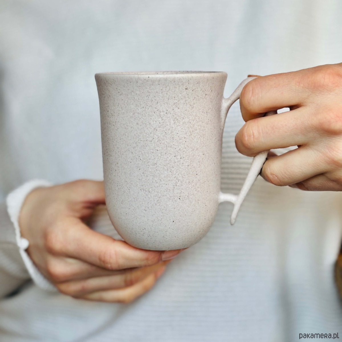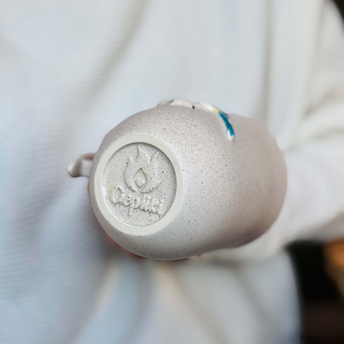 Ceramiczny kubek wykonany ręcznie metodą odlewania.