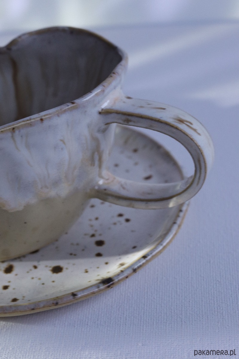 Ceramika została starannie uformowana i wypalona w wysokiej temperaturze, co zapewnia jej trwałość, odporność na codzienne użytkowanie oraz przyjemny, gładki dotyk. Całość pokrywa wysokiej jakości szkliwo z certyfikatami nietoksyczności. Od spodu znajduje się logo mojej marki, potwierdzające autorskie wykonanie i unikalny charakter każdego egzemplarza.