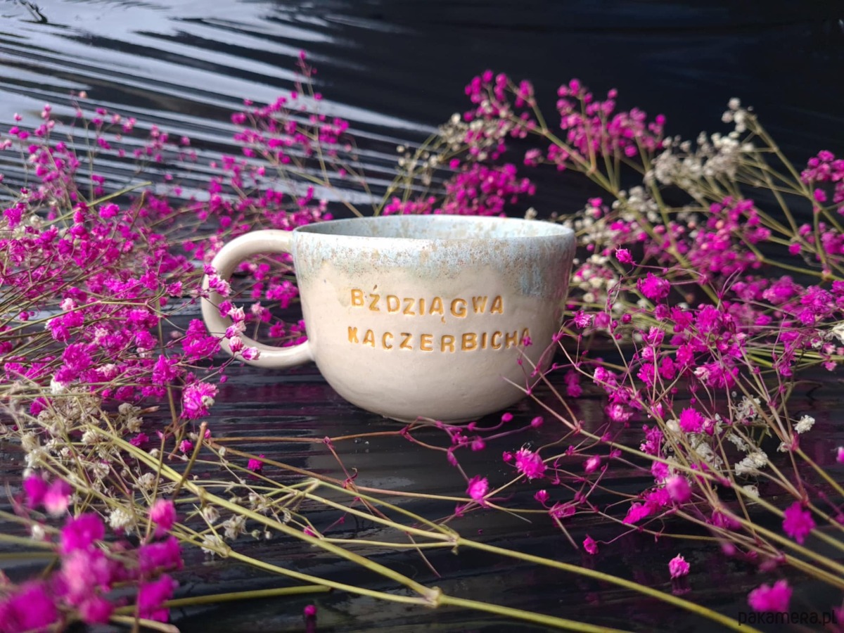 Kubek ceramiczny z napisem "Bździągwa Kaczerbicha"- po prostu Zołza