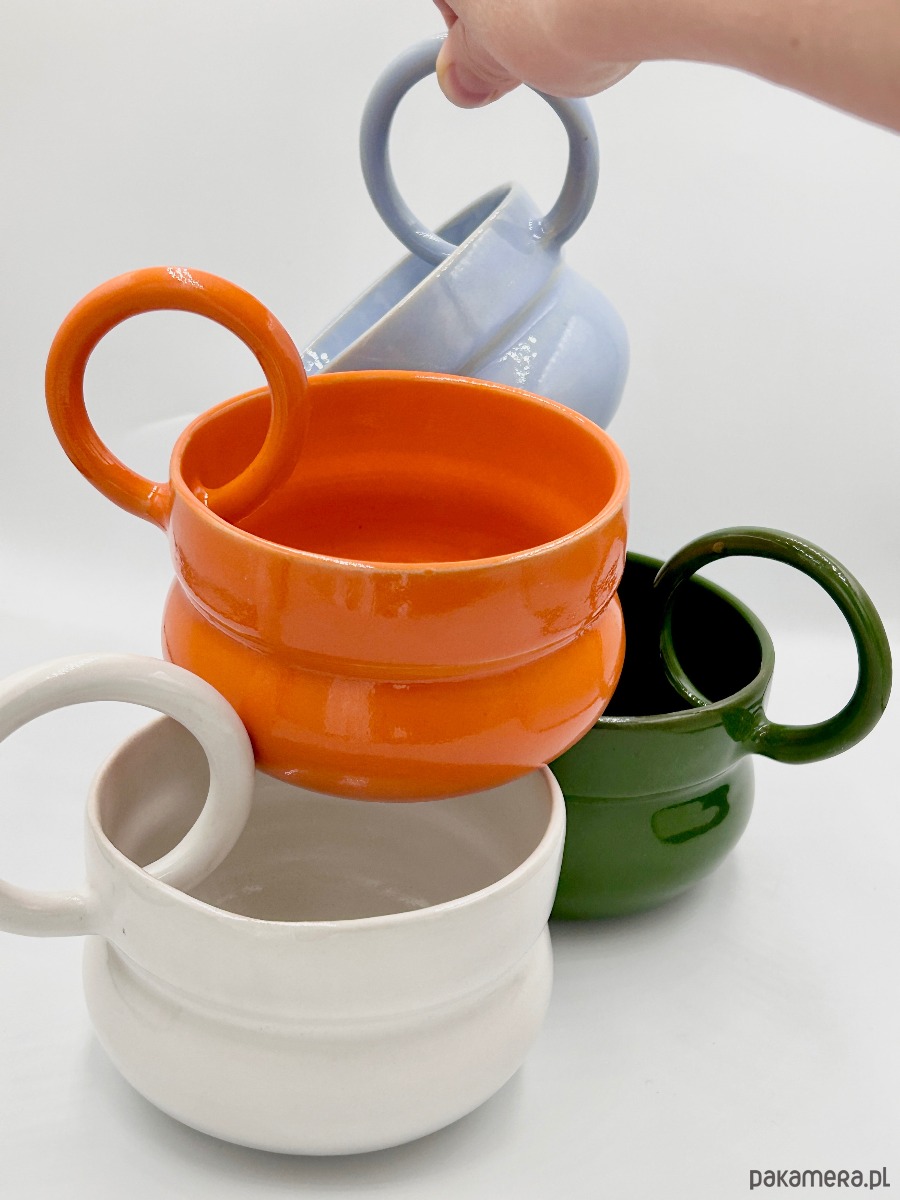 Ręcznie wykonany kubek ceramiczny, szkliwiony pędzlem , o pojemności Ok. 400ml. Kubek wykonany na kole garncarskim - mała produkcja.