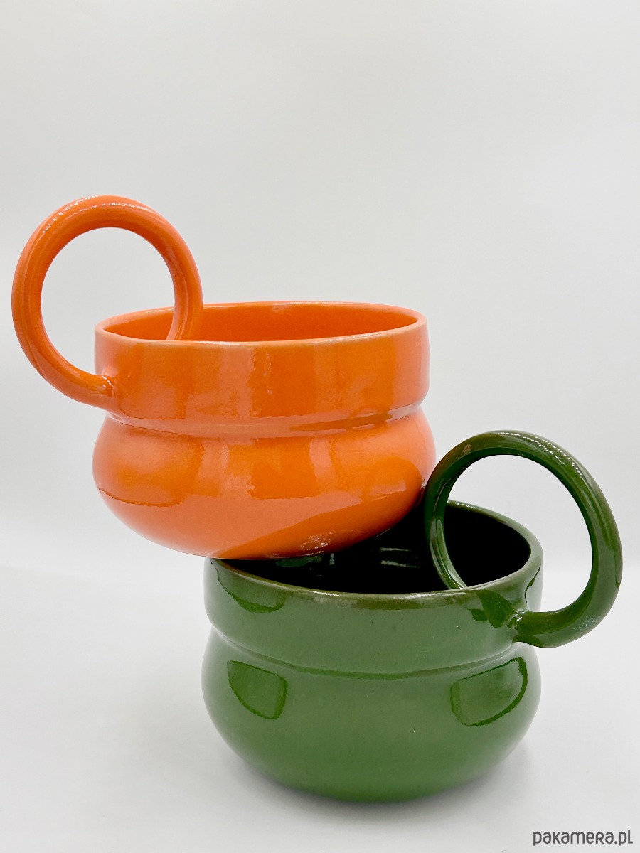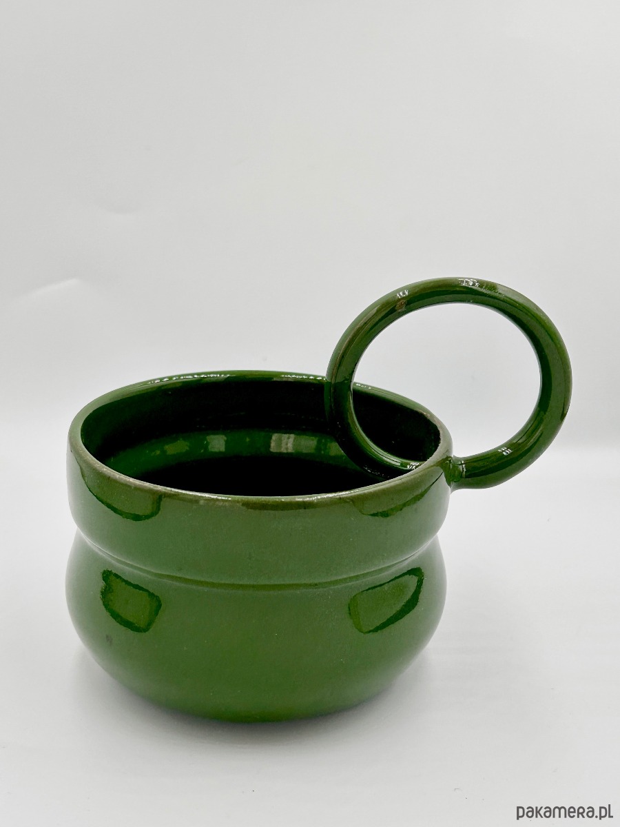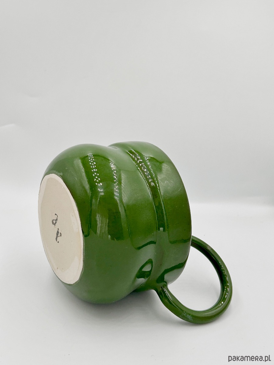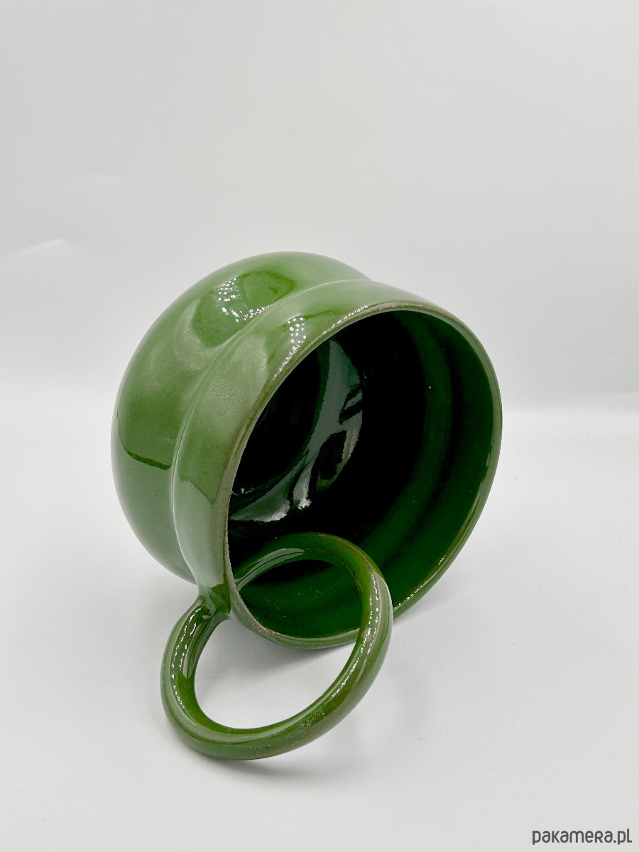 Ręcznie wykonany kubek ceramiczny, szkliwiony pędzlem , o pojemności Ok. 400ml. Kubek wykonany na kole garncarskim - mała produkcja.