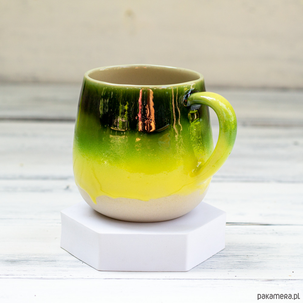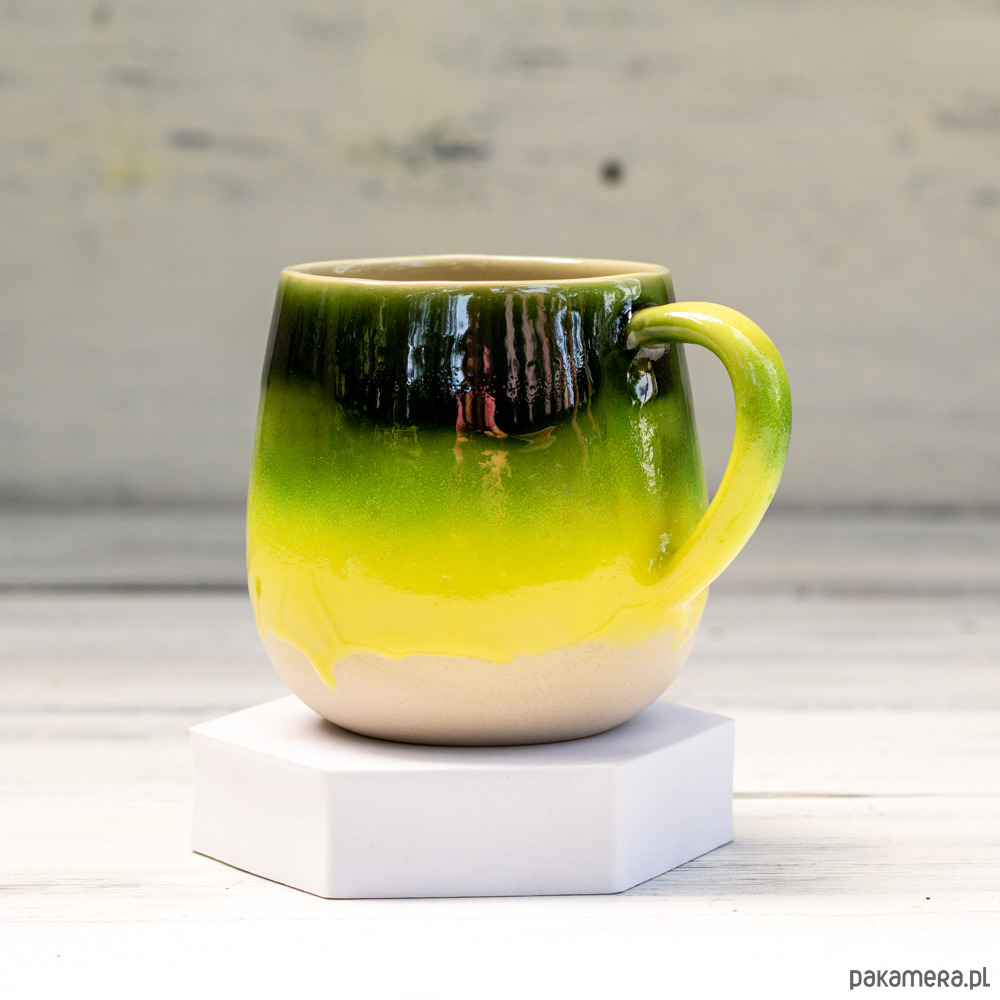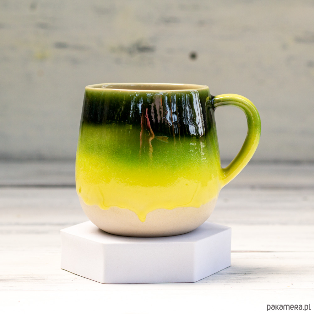 Ten oszałamiający, ręcznie robiony ceramiczny kubek ma dużą pojemność 600 ml, idealny dla tych, którzy lubią herbatę lub bezalkoholowego drinka w dużych rozmiarach! Zachwycająca zielono-żółta kolorystyka sprawia wrażenie cierpkiej cytryny, dzięki czemu każdy łyk podnosi na duchu i orzeźwia. Unikalny, ręcznie wykonany projekt spodoba się tym, którzy lubią przedmioty wyjątkowe, dzięki czemu będzie to wspaniała opcja na prezent. Czy to dla Ciebie, czy dla wyjątkowego miłośnika herbaty w Twoim życiu, ten kubek obiecuje podnieść każdą przerwę na herbatę do niezapomnianego doświadczenia.