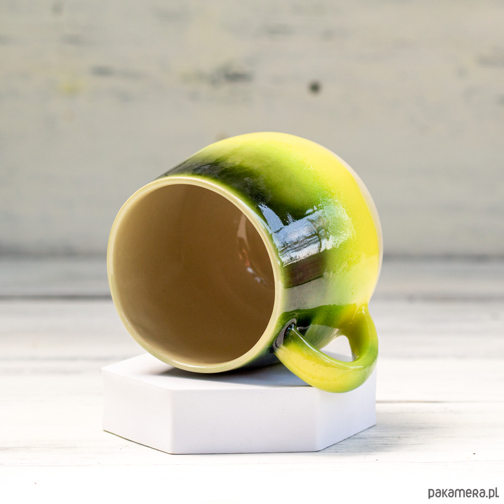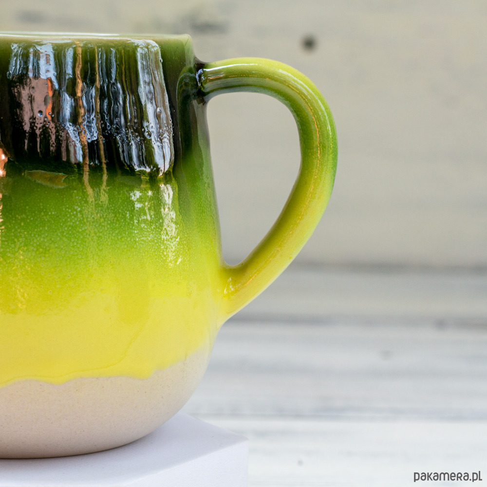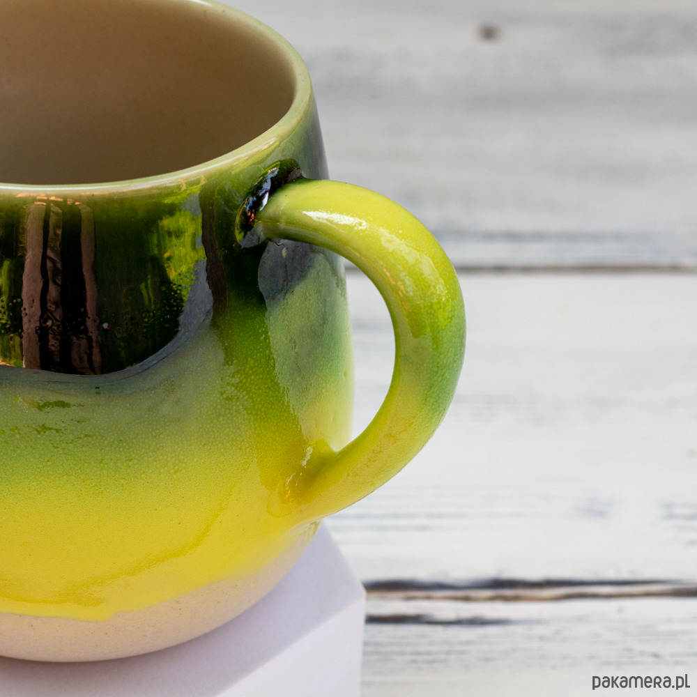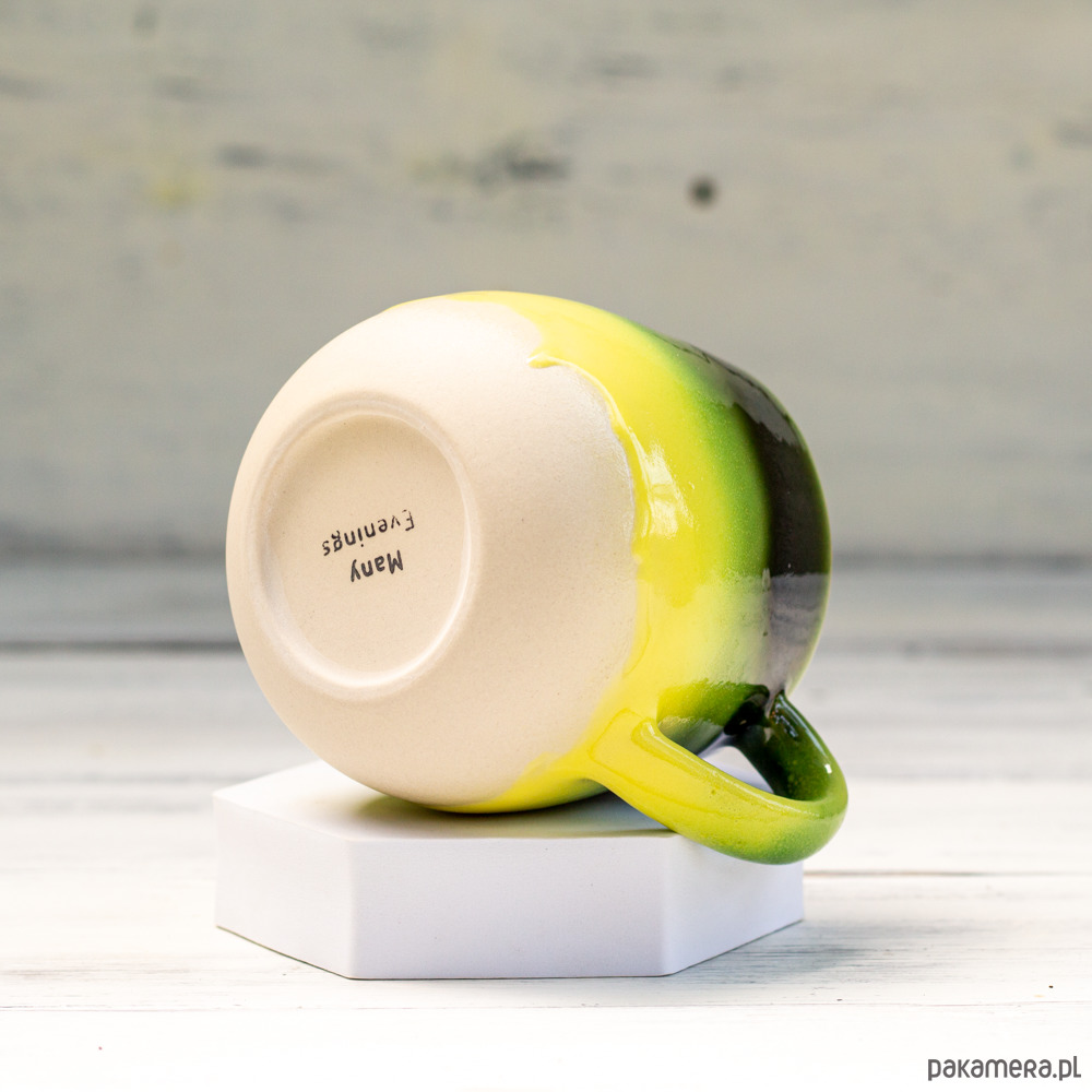 Ten oszałamiający, ręcznie robiony ceramiczny kubek ma dużą pojemność 600 ml, idealny dla tych, którzy lubią herbatę lub bezalkoholowego drinka w dużych rozmiarach! Zachwycająca zielono-żółta kolorystyka sprawia wrażenie cierpkiej cytryny, dzięki czemu każdy łyk podnosi na duchu i orzeźwia. Unikalny, ręcznie wykonany projekt spodoba się tym, którzy lubią przedmioty wyjątkowe, dzięki czemu będzie to wspaniała opcja na prezent. Czy to dla Ciebie, czy dla wyjątkowego miłośnika herbaty w Twoim życiu, ten kubek obiecuje podnieść każdą przerwę na herbatę do niezapomnianego doświadczenia.