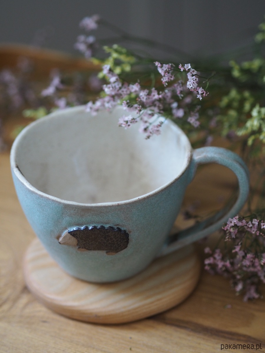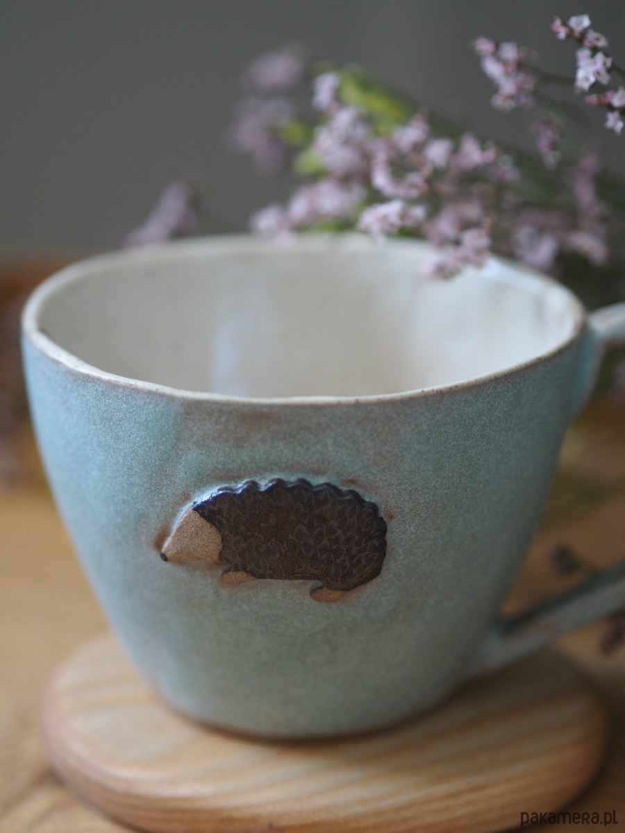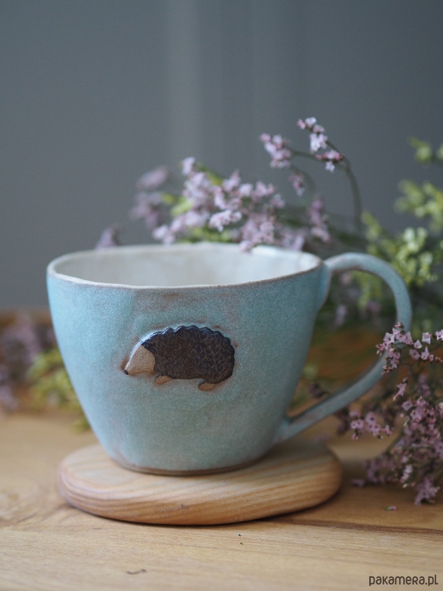 Duży kubek z motywem jeża. Pojemność 480ml. Można myć w zmywarce. Wypalany w 1240stopniach.