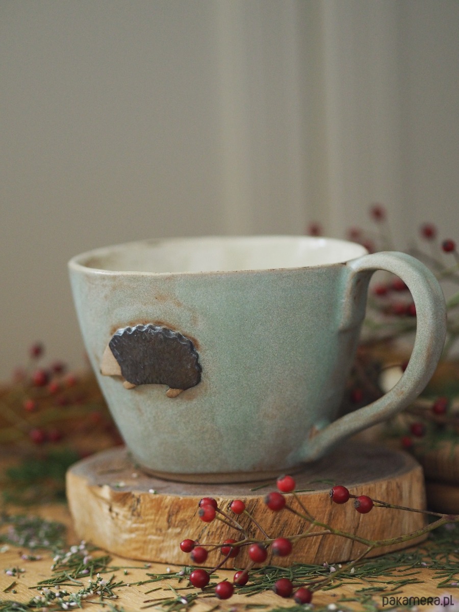 Duży kubek z motywem jeża. Pojemność 480ml. Można myć w zmywarce. Wypalany w 1240stopniach.